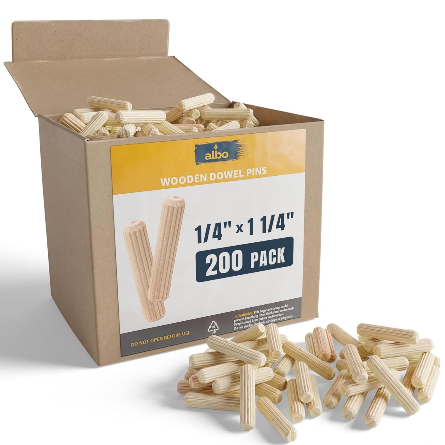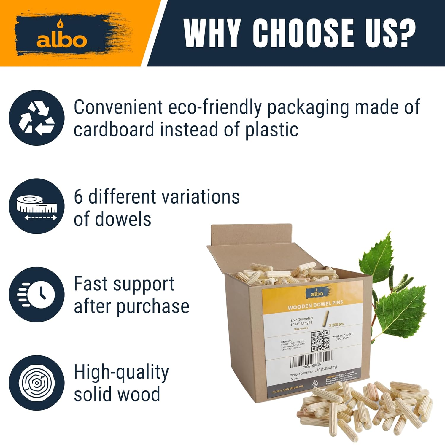 ALBO Wooden Dowel Pins 100 Pack Assorted Sizes 1/2 + 3/8 + 5/16 + 1/4 inch Fluted Wood Dowels Rods Hardwood Crafts Dowel PegsPL17-B08L3V8TZW