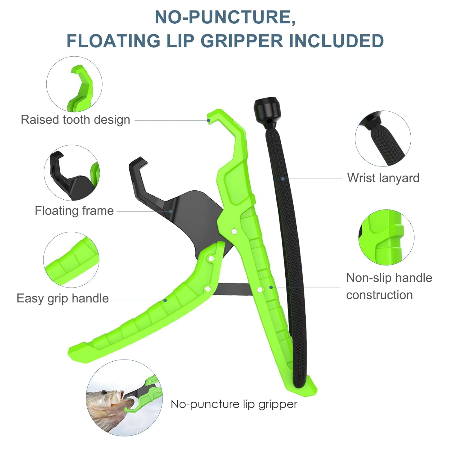 Fish-Friendly Design with Fish Pinch: The fishing scale features a fish controller with a floating and puncture-free design, ensuring no harm is caused to the fish during weighing. This fish pinch securely holds the fish in place for accurate measurements and remains buoyant if accidentally dropped into the water.