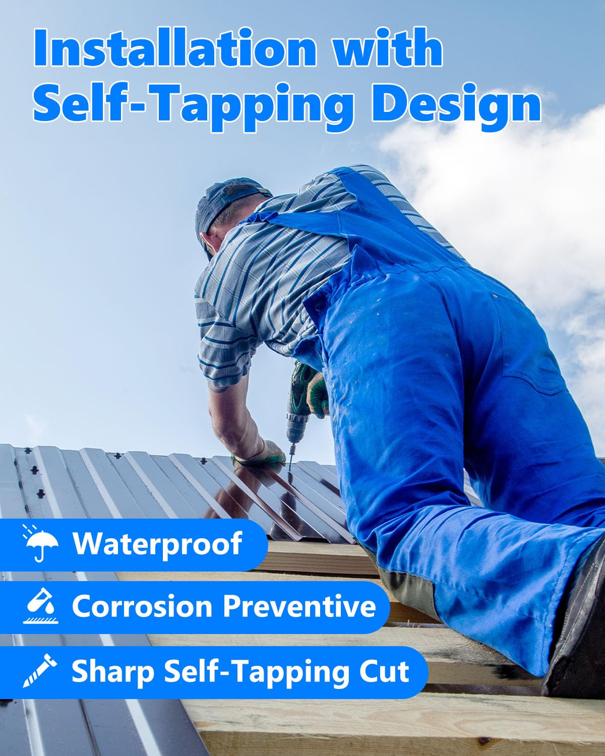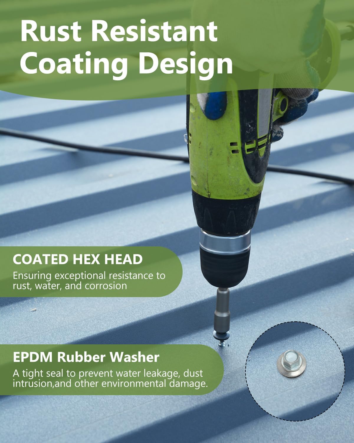 Reliable Sealing with Rubber Washers - Each metal roof screws is equipped with a 1/2-inch EPDM rubber washer, creating a tight seal to prevent water leakage, dust intrusion, and other environmental damage. This feature extends the lifespan of your roofing and other construction projects