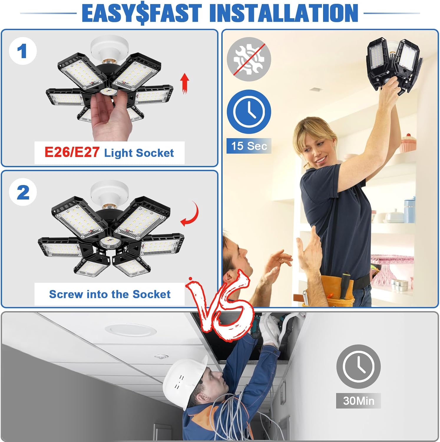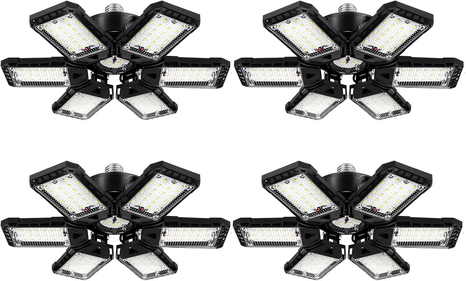 🔋【Safety & Energy Saving】Upgraded Garage Lighting Bulb is made of high quality aluminum heatsink and each panel features a unique hollow-out design that make a better heat dissipation. Make lifespan more than 50000 hours , and equivalent to 6 traditional light bulbs, more than 85% energy saving than traditional lamp.