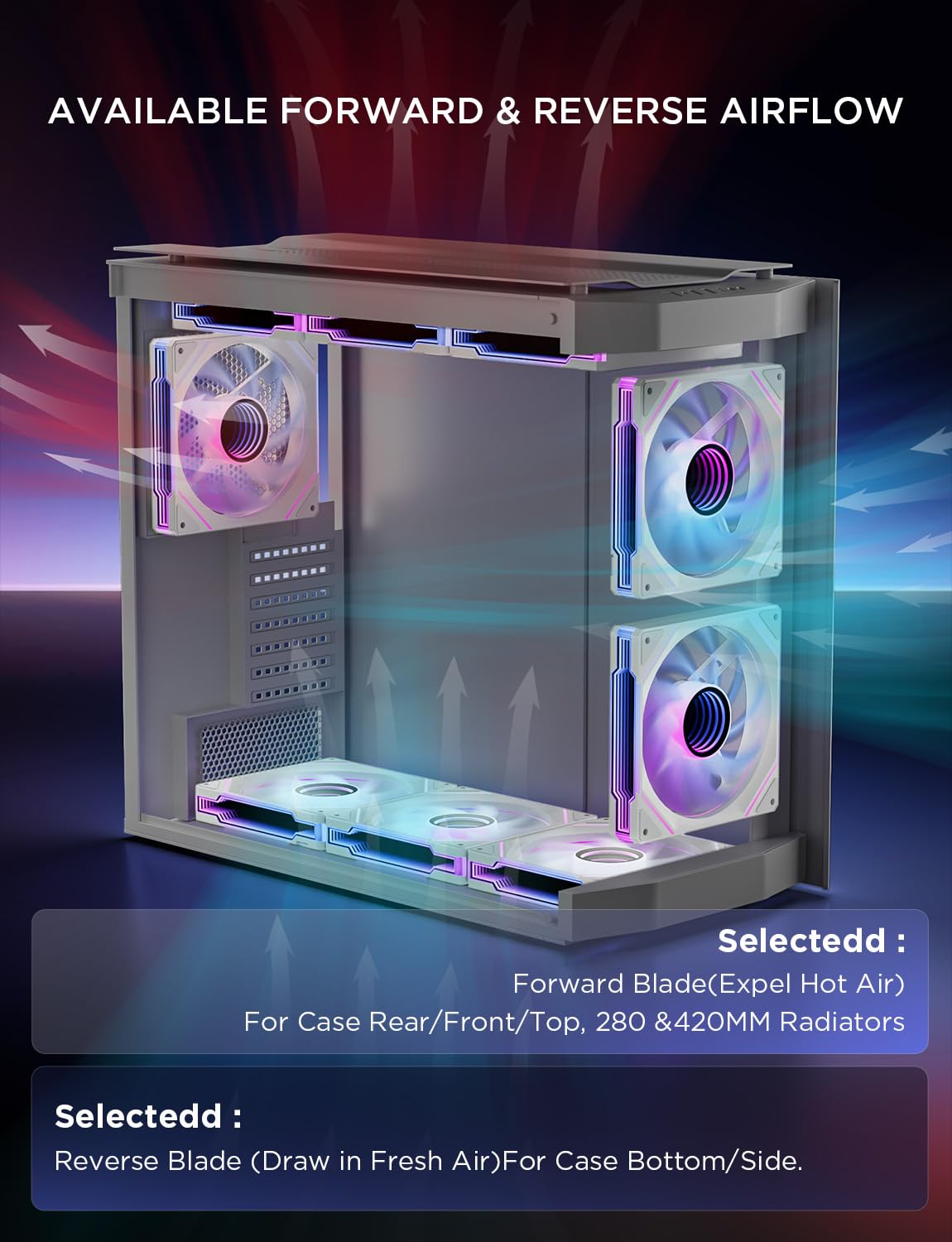 Infinity Mirror ARGB Synchronization: The ARGB fan comes equipped with infinity mirrors and 32 LED beads, capable of displaying 16.8 million colors. Compatible with all of synchronization systems, adding visual appeal and high-performance capabilities to workstations and gaming platforms
