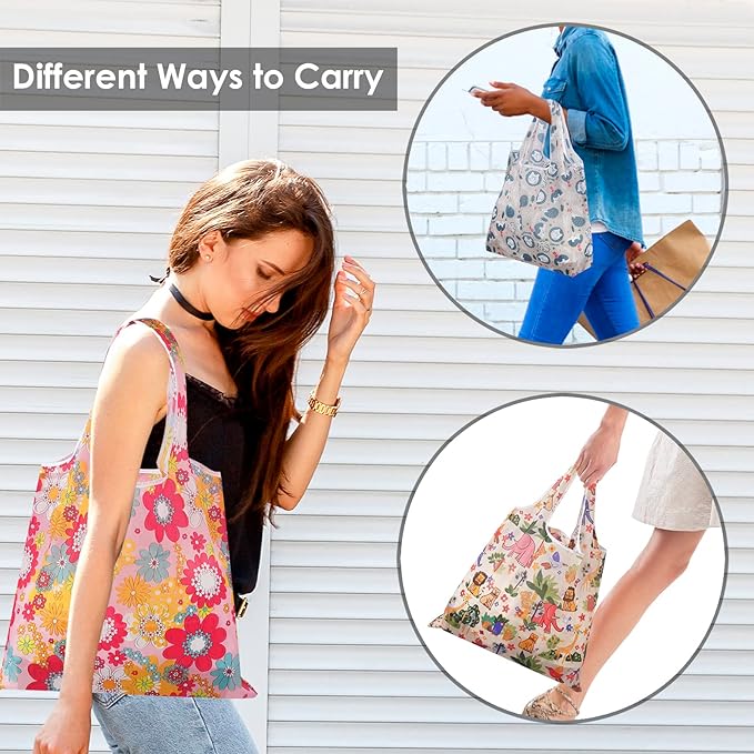 - 【Foldable and Easy to Carry】Our grocery bags are easy to fold into the attached pouch, when you don't need to use it, you can put it into your purse, pocket or car without taking up too much space, with a small lanyard design, the folded shopping bag can also be hung on the hook.