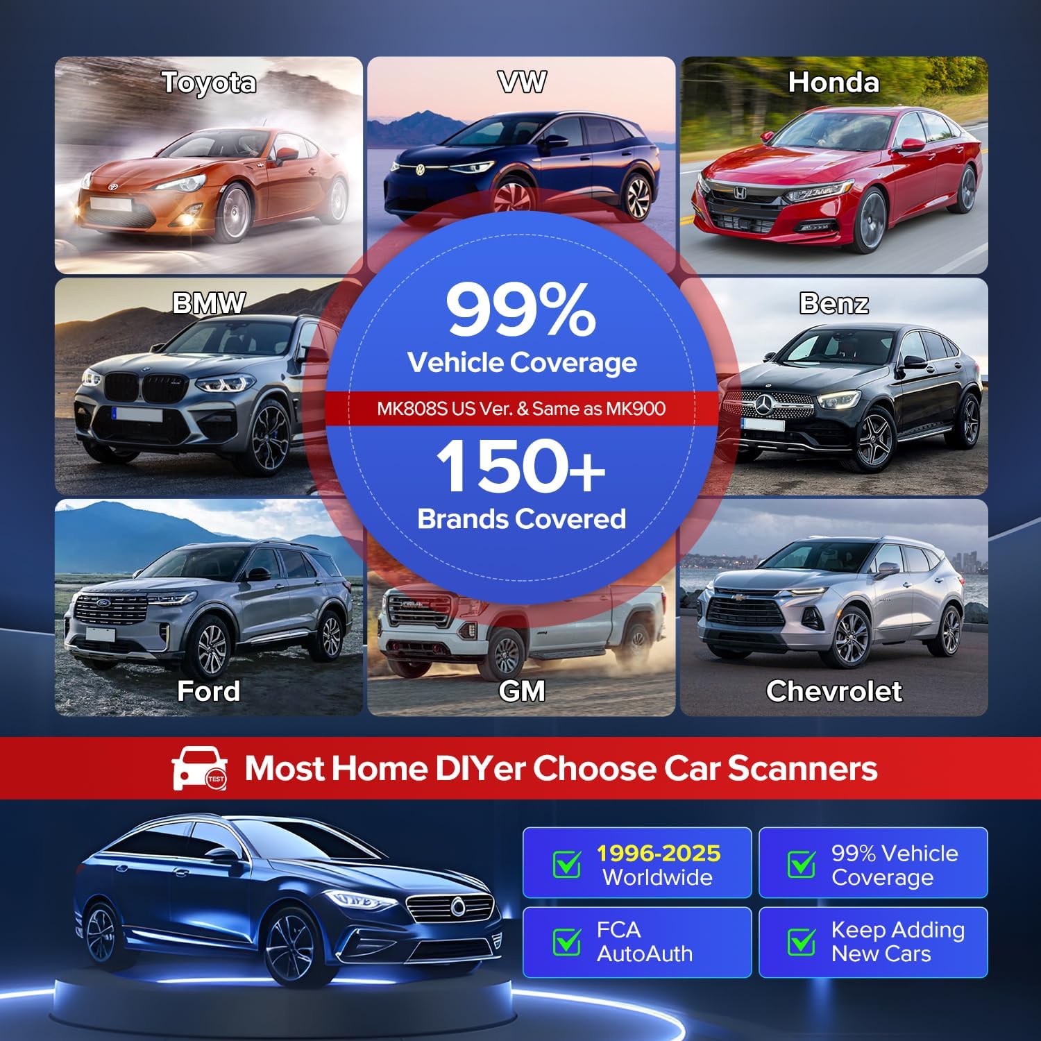 👍【10,000+ Vehicle Coverage, Enhanced OBD2 Scanner】Autel MX808S car diagnostic tool shares same wide vehicle coverage as Autel MK808S/ MK808/ MK808BT Pro, covering 10,000+ US, Asian, EU vehicles, more newer cars are in consistant adding. Autel MX808S car scan tool is compatible with over 95% OBD2/EOBD cars, fast-access option for OBDII/ EOBD vehicle diagnosis is available to present a quick way to check DTCs, locate the cause of a MIL, monitor status prior to smog check, verify repairs and etc.