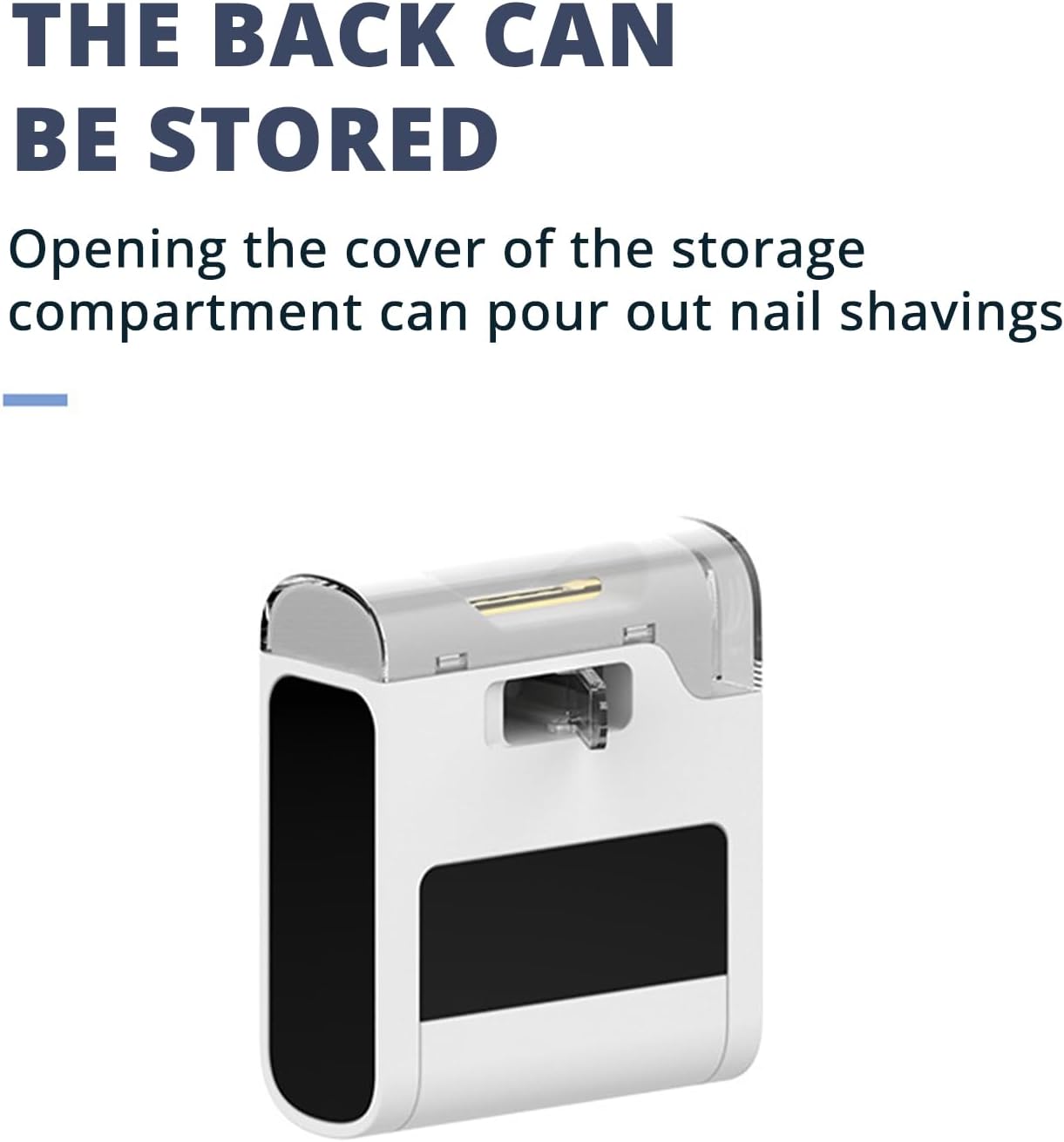 Nails shavings organizers,the automatic nails clippers has a built-in chip storage box, which can be automatically stored after trimming nails, and then you can quickly and easily clean it by rotating the button to dump the nails clippings, you none longer have to worry about nails shavings flying everywhere