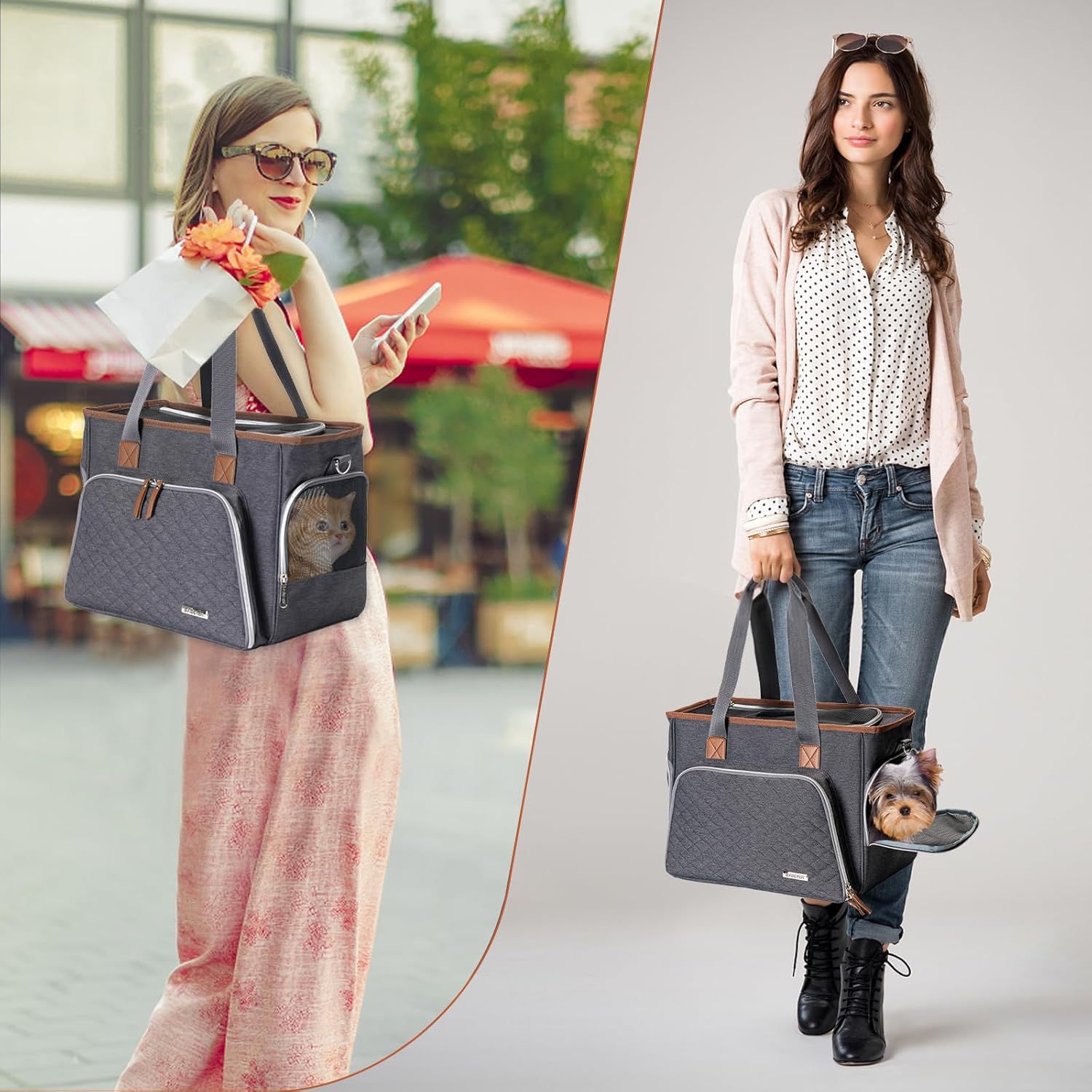 BABEYER Cat Purse Carrier, Puppy Purse Carrier, TSA Airline-Approved Pet Carrier for Small Dogs and Cats Under 12lbs for Travel, Outdoor, Vet Visits-Grey