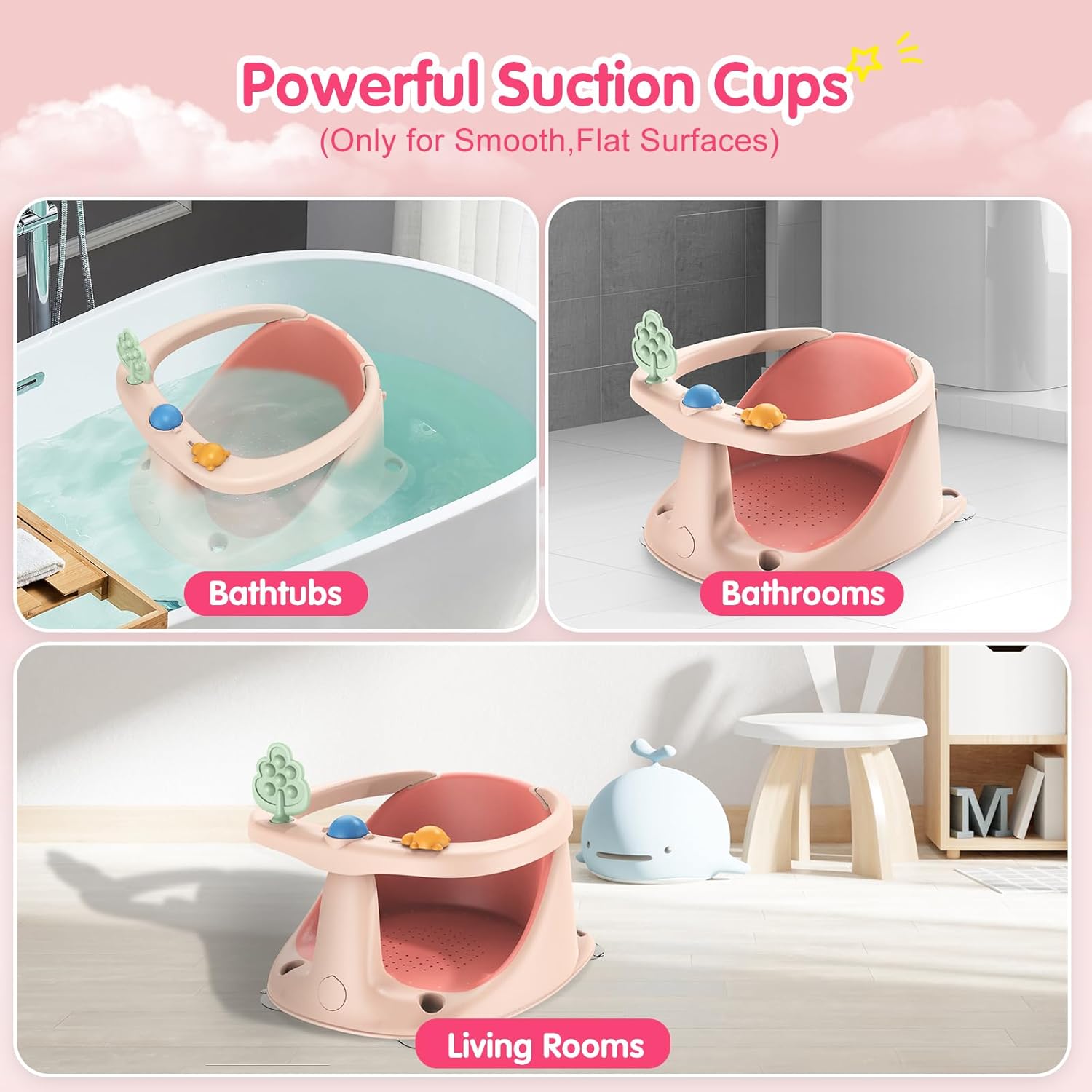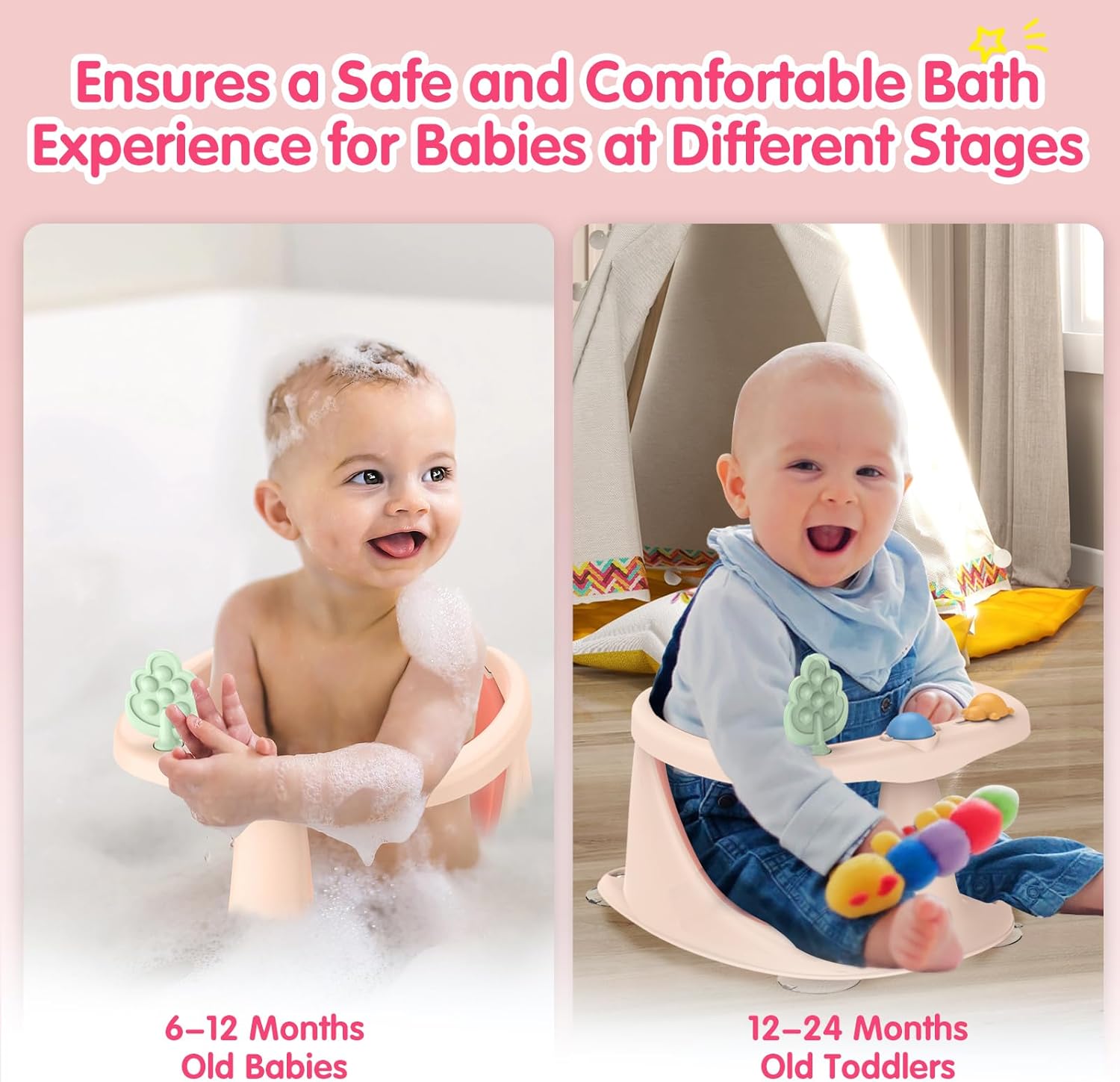 • Solve Baby's Bathing Troubles:This baby bath seat is designed to help parents with the challenges of bath time. Toddler bath seat make your baby sit securely in the tub, allowing parents to clean every part of their little one without constantly holding them. This reduces the need for extra help, making bath time easier, safer, and more efficient,making it a must-have baby item for bath seat for babies 6 months & up.