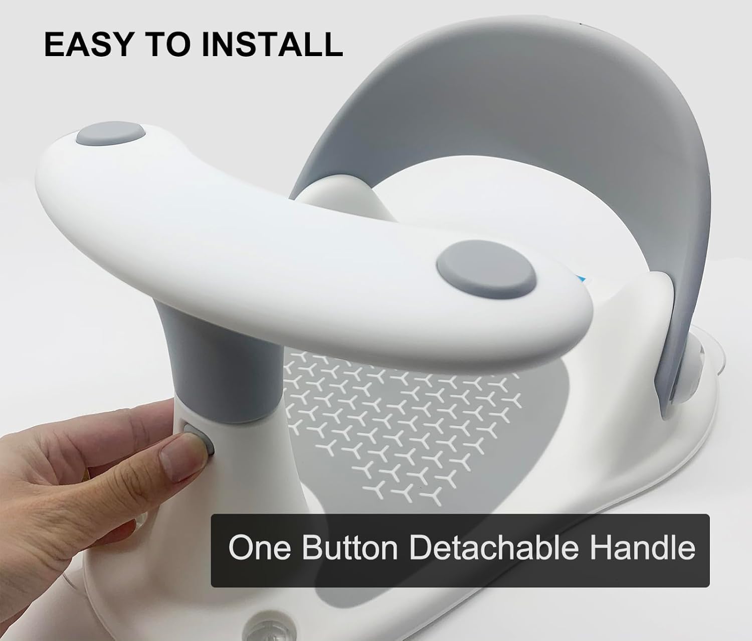 - Easy to Install: The bath seat is designed with a One Button Detachable Handle, allowing for easy carry and storage. You can effortlessly remove the handle when not in use, making it convenient for travel or compact storage in your bathroom.