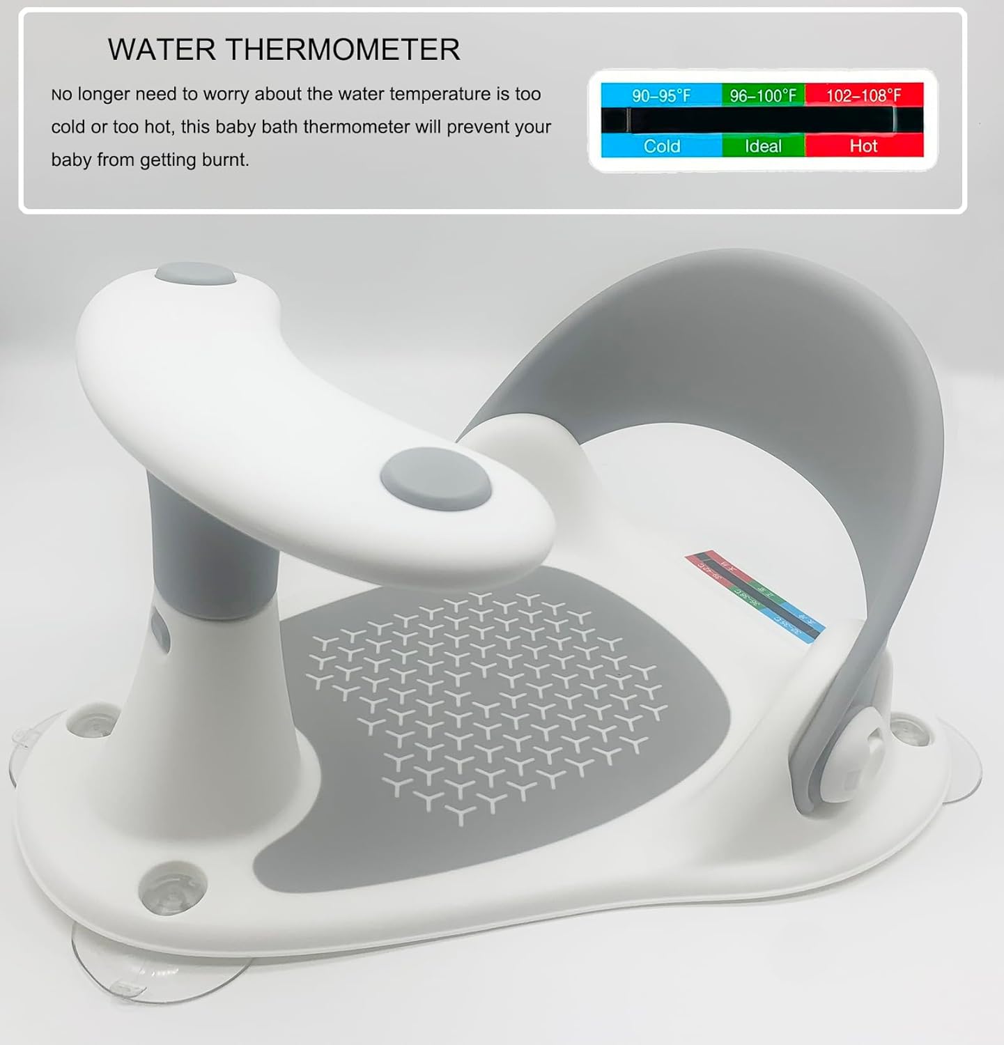 - New Deasign Baby Bath Seat: The baby bath seat is equipped with a convenient water thermometer, ensuring the optimal water temperature for your little one's bath time. This feature helps you maintain a safe and comfortable bathing experience for your baby.
