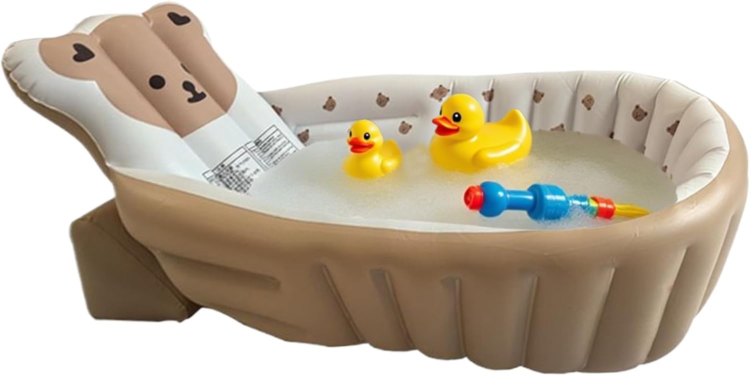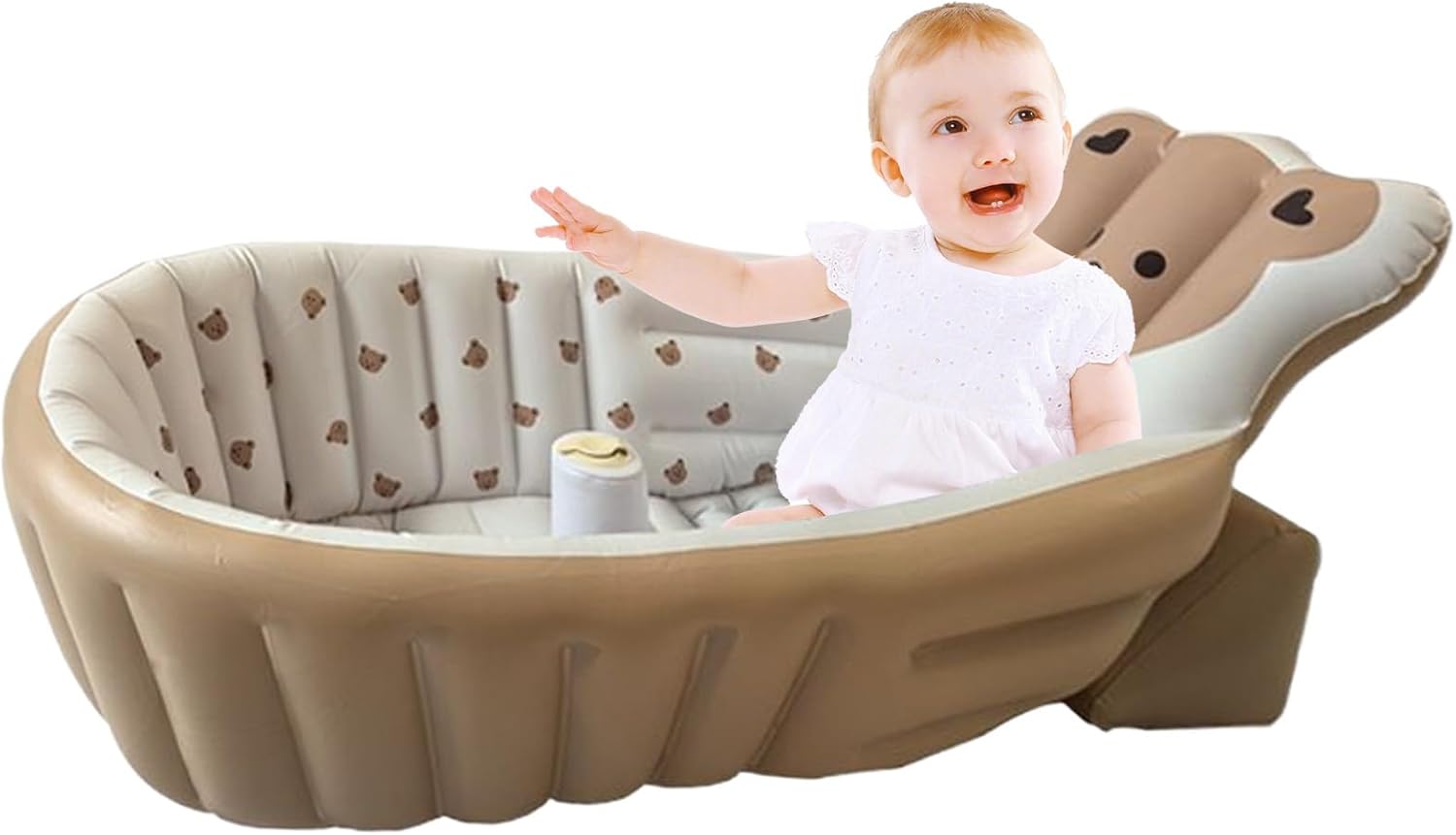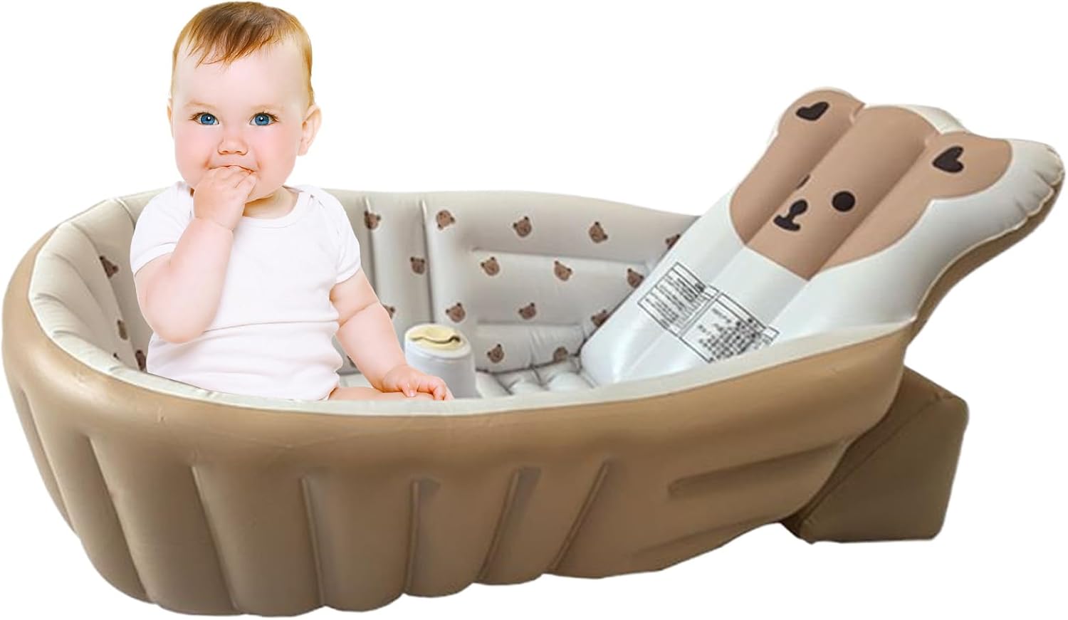 Baby Bath Tub, Inflatable Toddler Wash Tub Bath Seat With Pump | Adjustable Bathing Support Seat, Foldable Sitting Shower Bathtub For Camping Beach Travel Outdoor