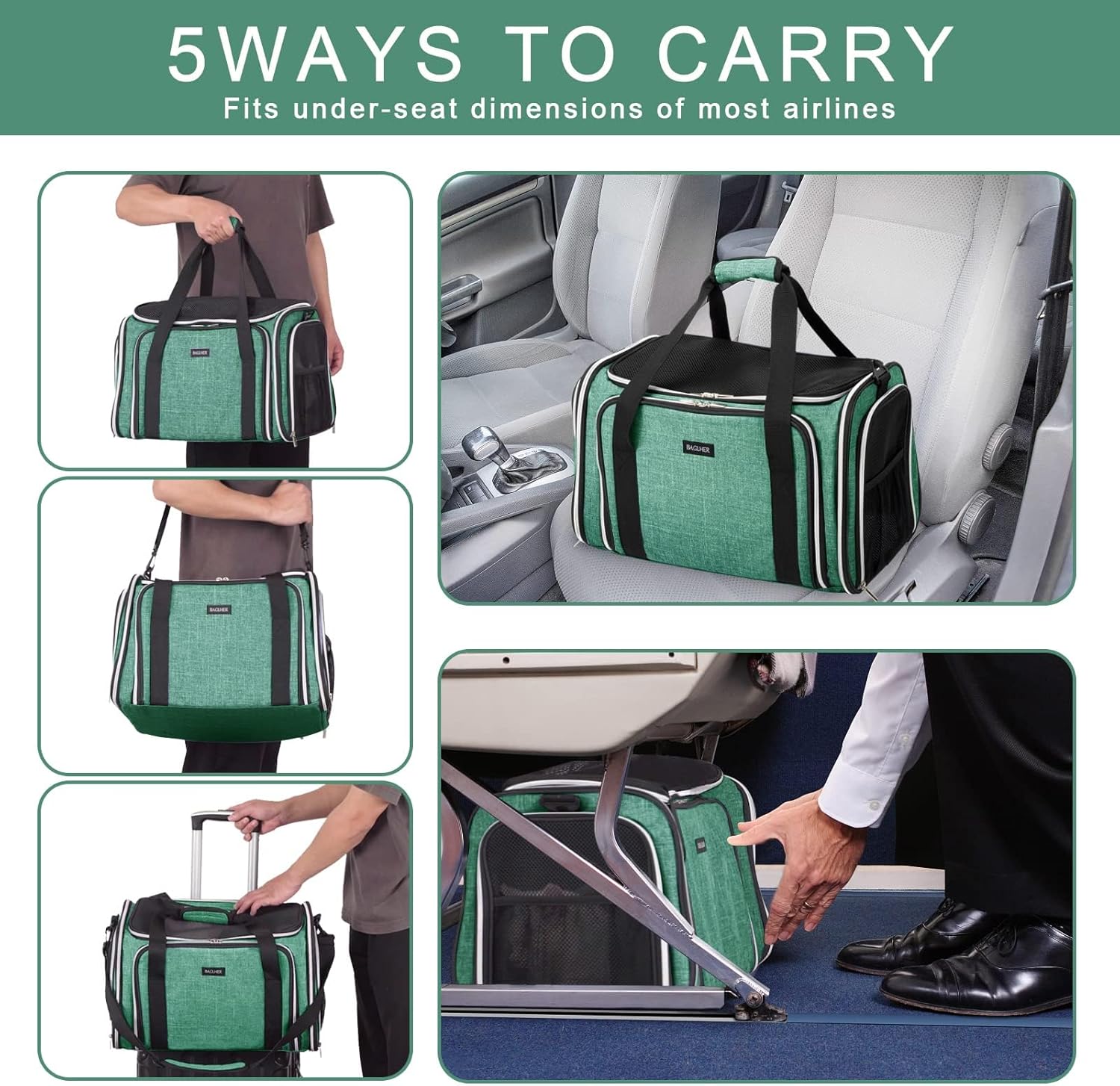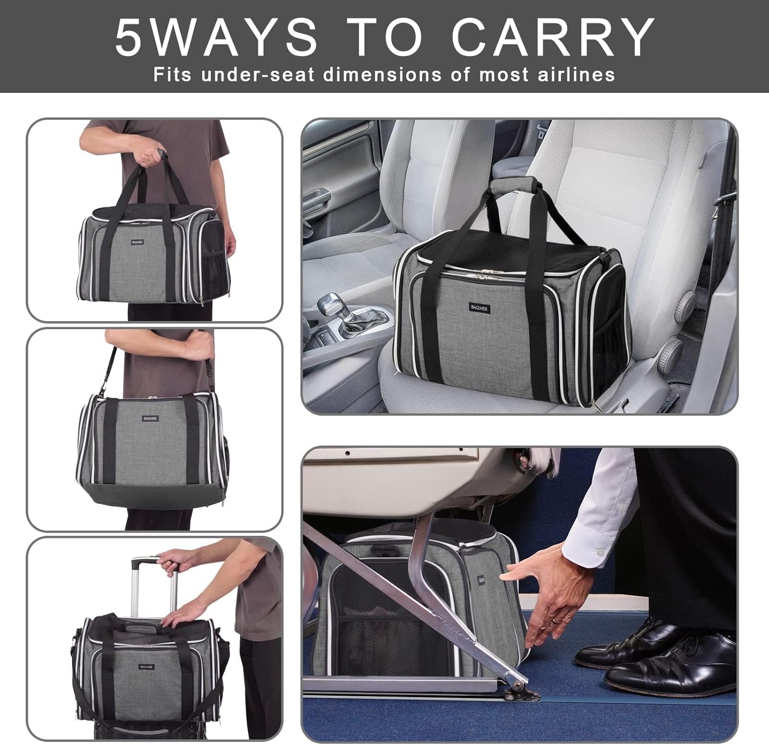 BAGLHER Cat Carrier Bag,Airline Approved Pet Carrier Soft Side Pet Travel 5 Sides Open Doors 3 Sides Expandable Foldable Dog Carrier with Fleece Pad