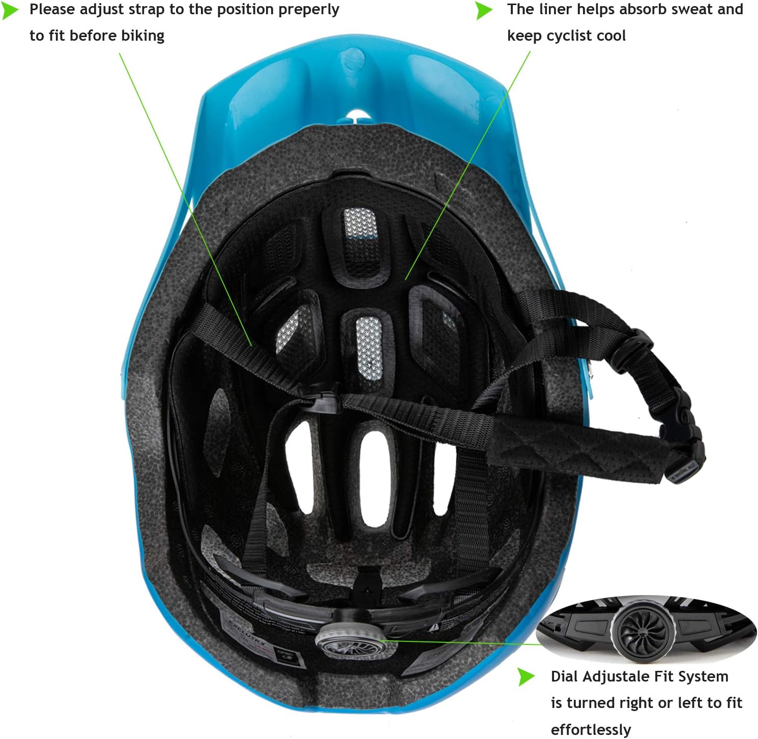 - Adjustment System: Single-Hand dial retention system is easy to adjust and secure the cycling helmet perfect fit on your head, It is very important for you to get helmet on head properly because potential dangers occurs easily with small or big size helmet. please measure your head circumference correctly before purchase, This helmet fits head circumferences 22.05-24.01inch/56-61cm