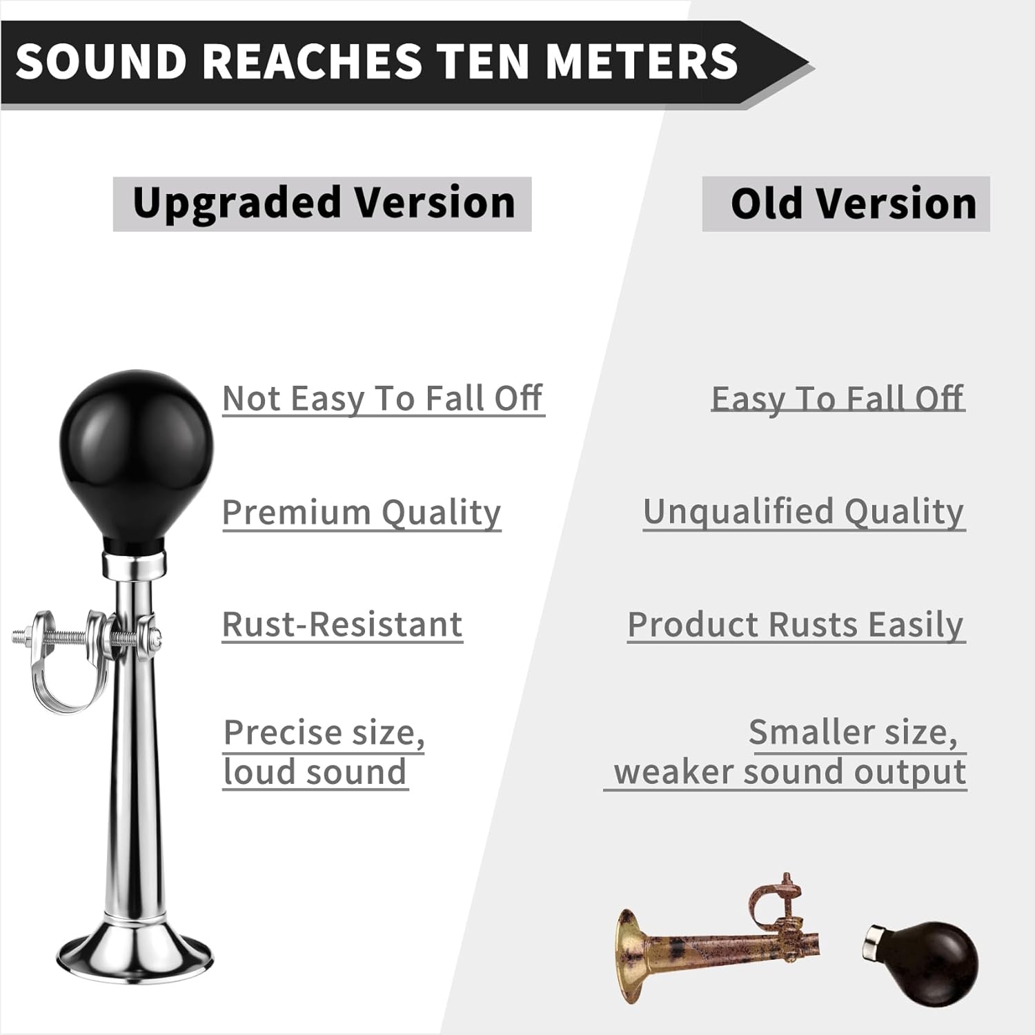 - HIGH-QUALITY The front section of the horn is made of a sturdy aluminum alloy to ensure durable and non-rust. The rubber ball of the horn is made of flexible rubber to ensure non-broken.