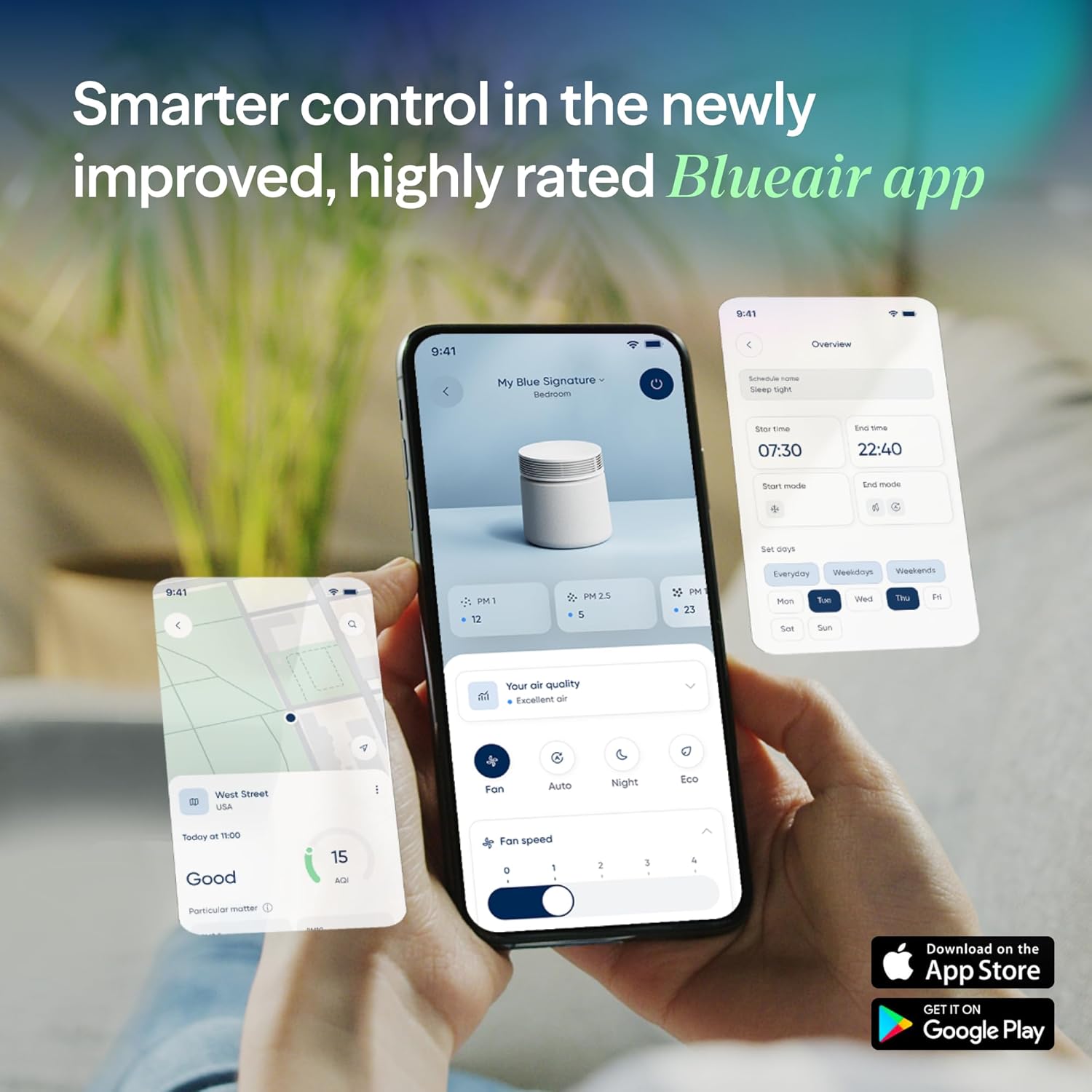 APP CONTROL & VOICE ASSISTANT – Customize settings, schedule cleanings, track indoor and outdoor air quality trends over time, and get filter replacement alerts—all from your phone. Compatible with Amazon Alexa and Google Home.