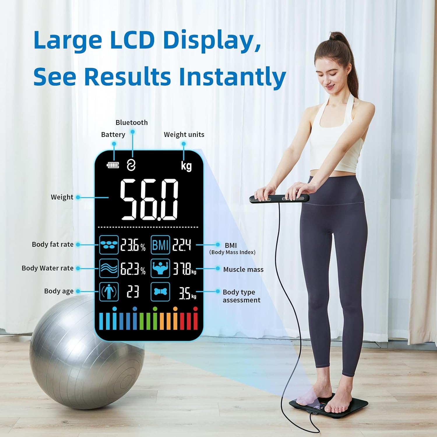 Measurement Type Digital, Advanced BIA TechnologyReadout Accuracy 0.1 KilogramsWeigh Scale Type Balance ScaleWeight Capacity Maximum 400 PoundsForm Factor scale, stableSpecial Features Large Display, Body Fat, Auto Shut Off, Smart, Bodyweight