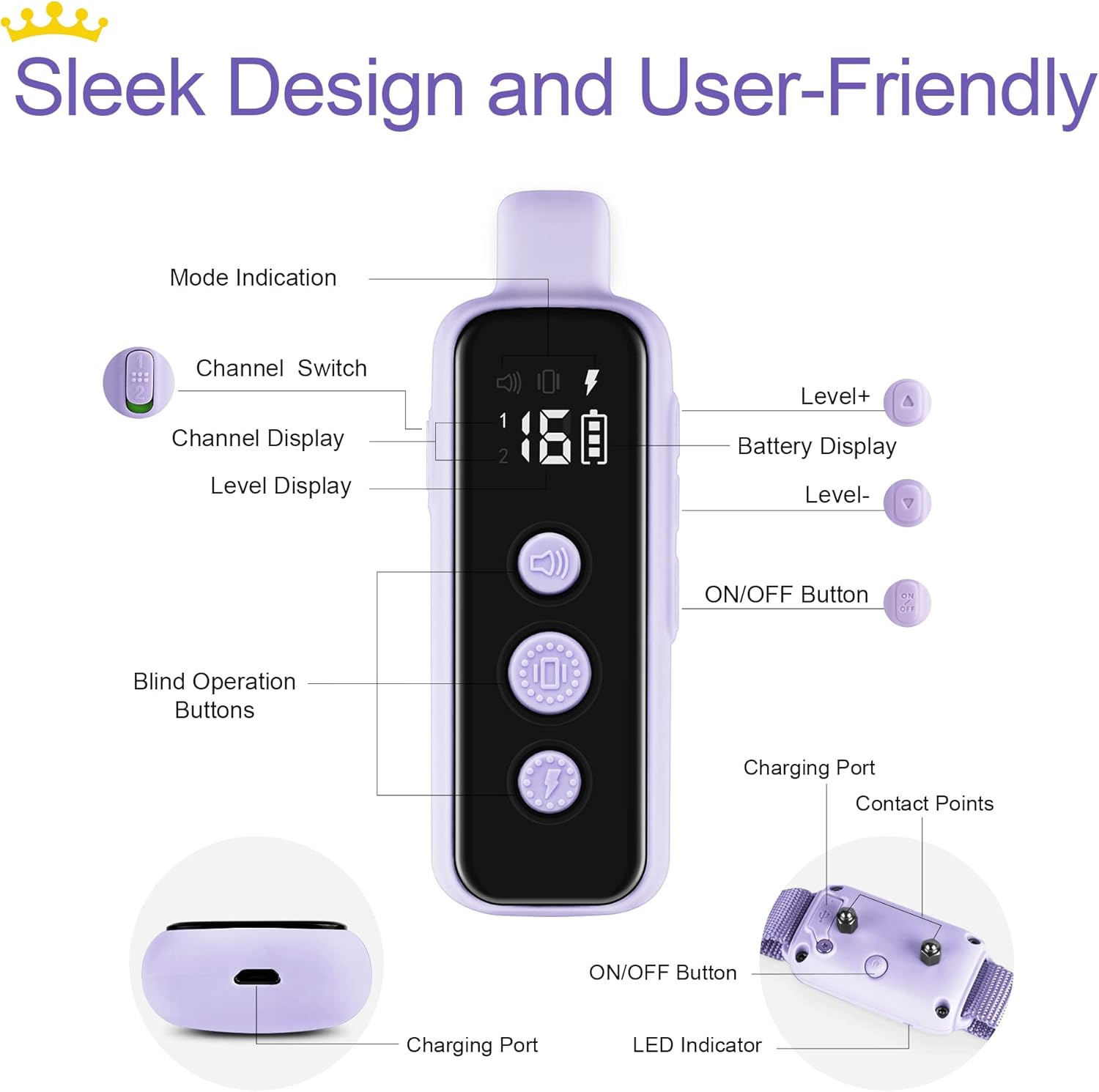 Bousnic Shock Collar for Dogs - Waterproof Rechargeable Dog Electric Training Collar with Remote for Small Medium Large Dogs with Beep, Vibration, Safe Shock Modes (8-120 Lbs) (Purple)