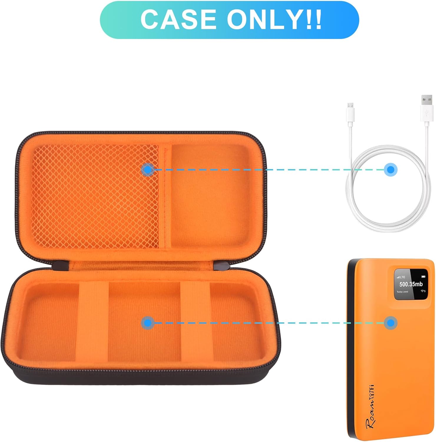 • Case Only! (mobile hotspot and accessories are not included). We specially designed this carrying case for RoamWiFi 4G LTE mobile hotspot router, it’s stylish and easy to use, perfect to keep your RoamWiFi mobile hotspot device and accessories safe in a secure place.