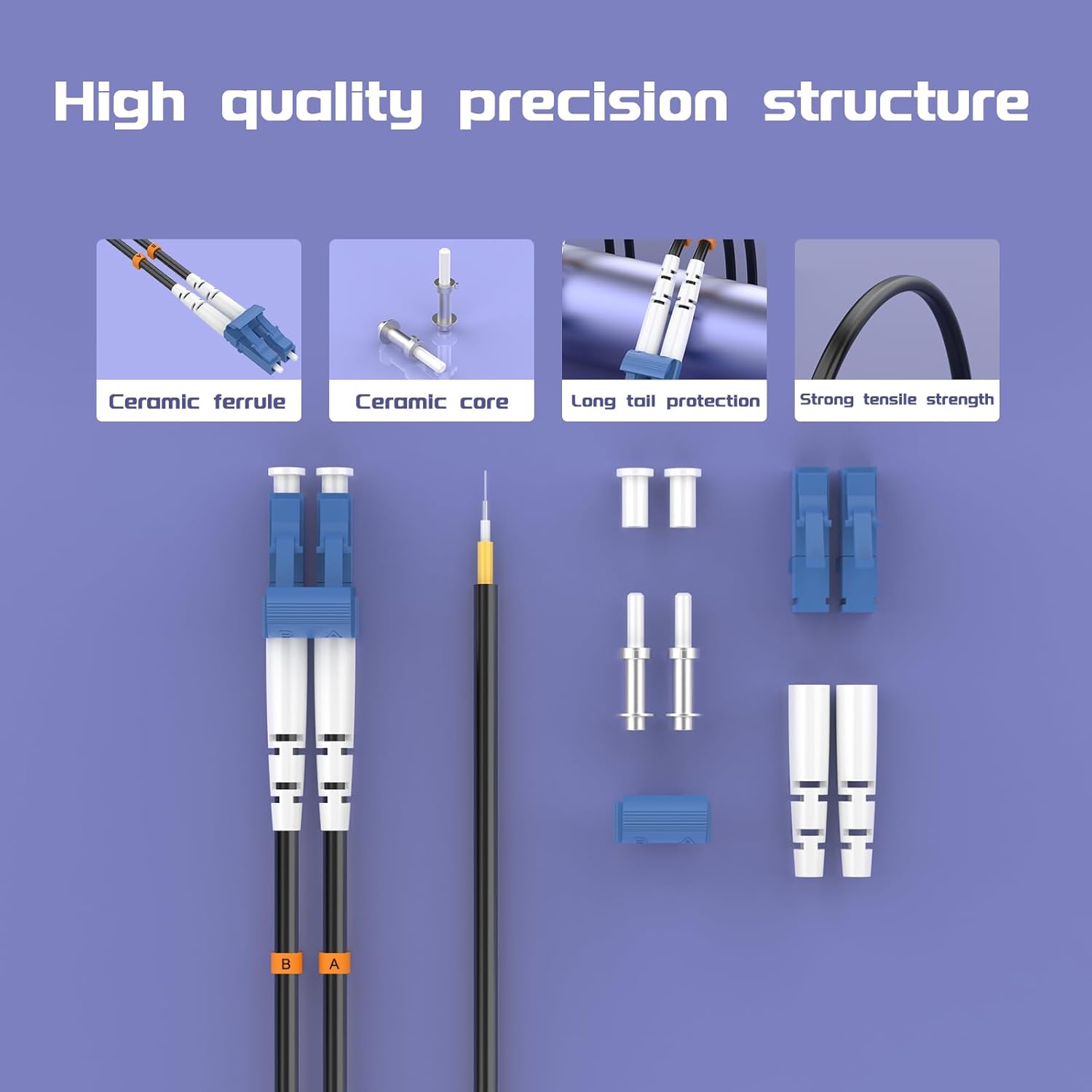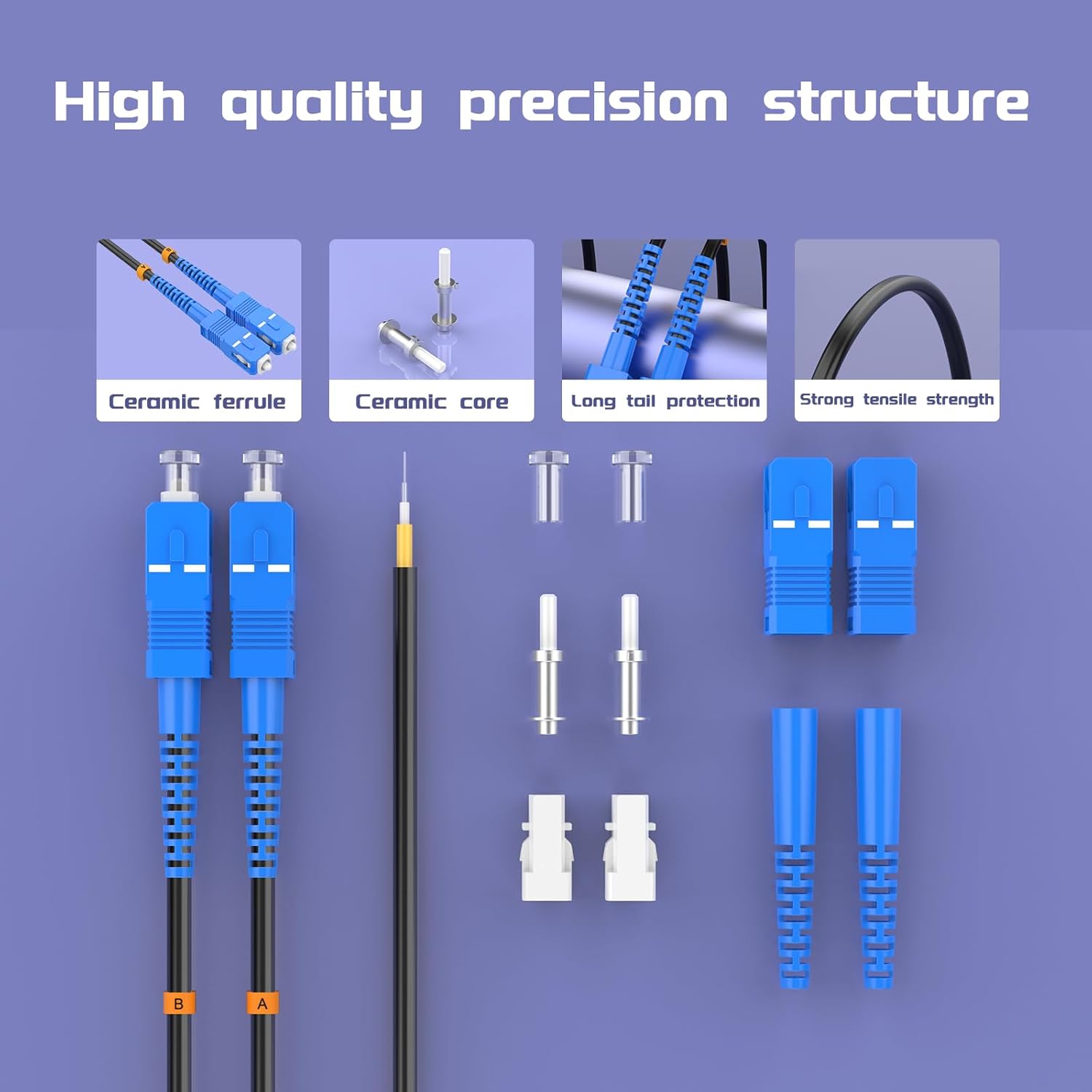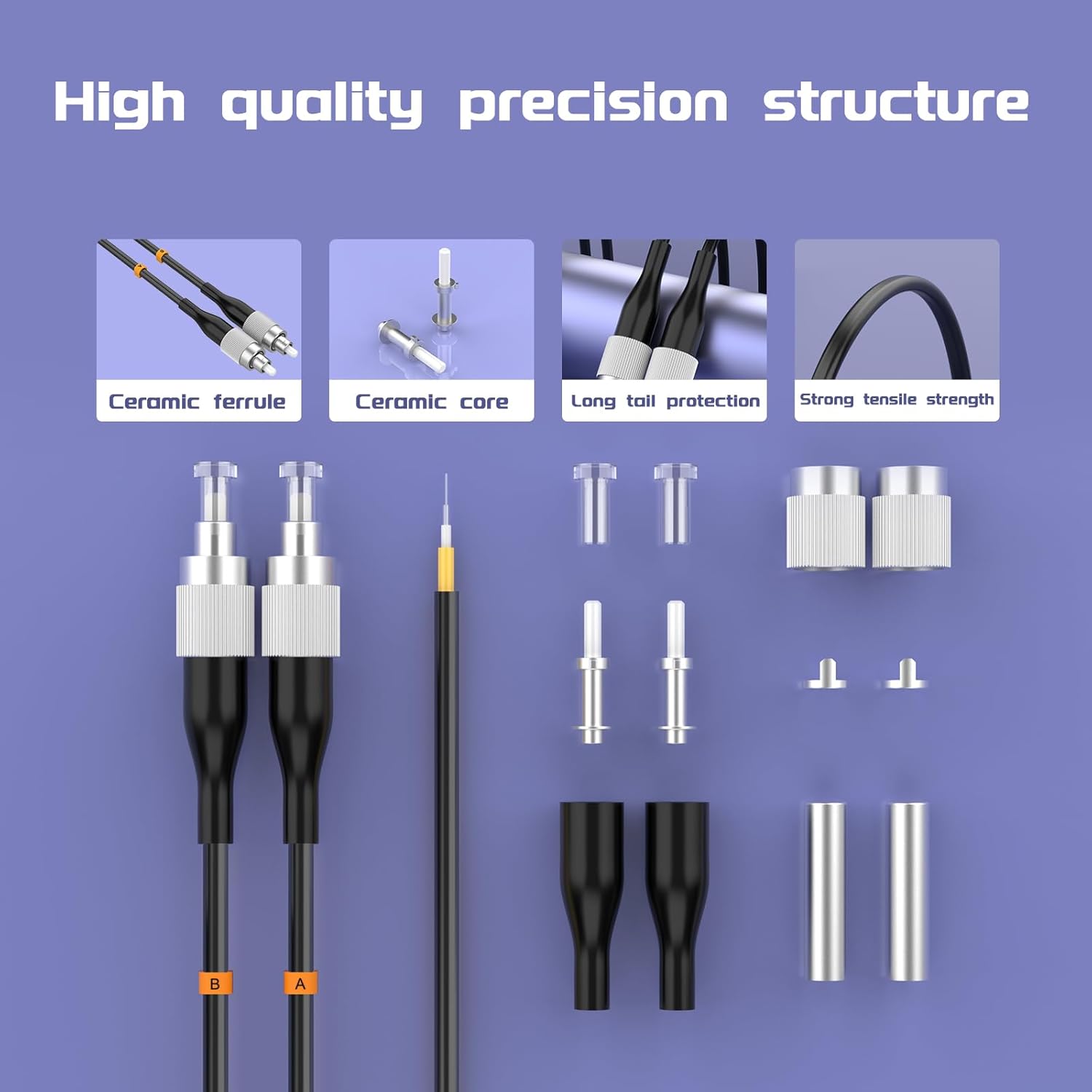 • 【High-Quality Ceramic Ferrules】 Equipped with premium ceramic ferrules, known for their high performance, stability, and durability, ensuring the stability and longevity of the fiber optic connectors.
