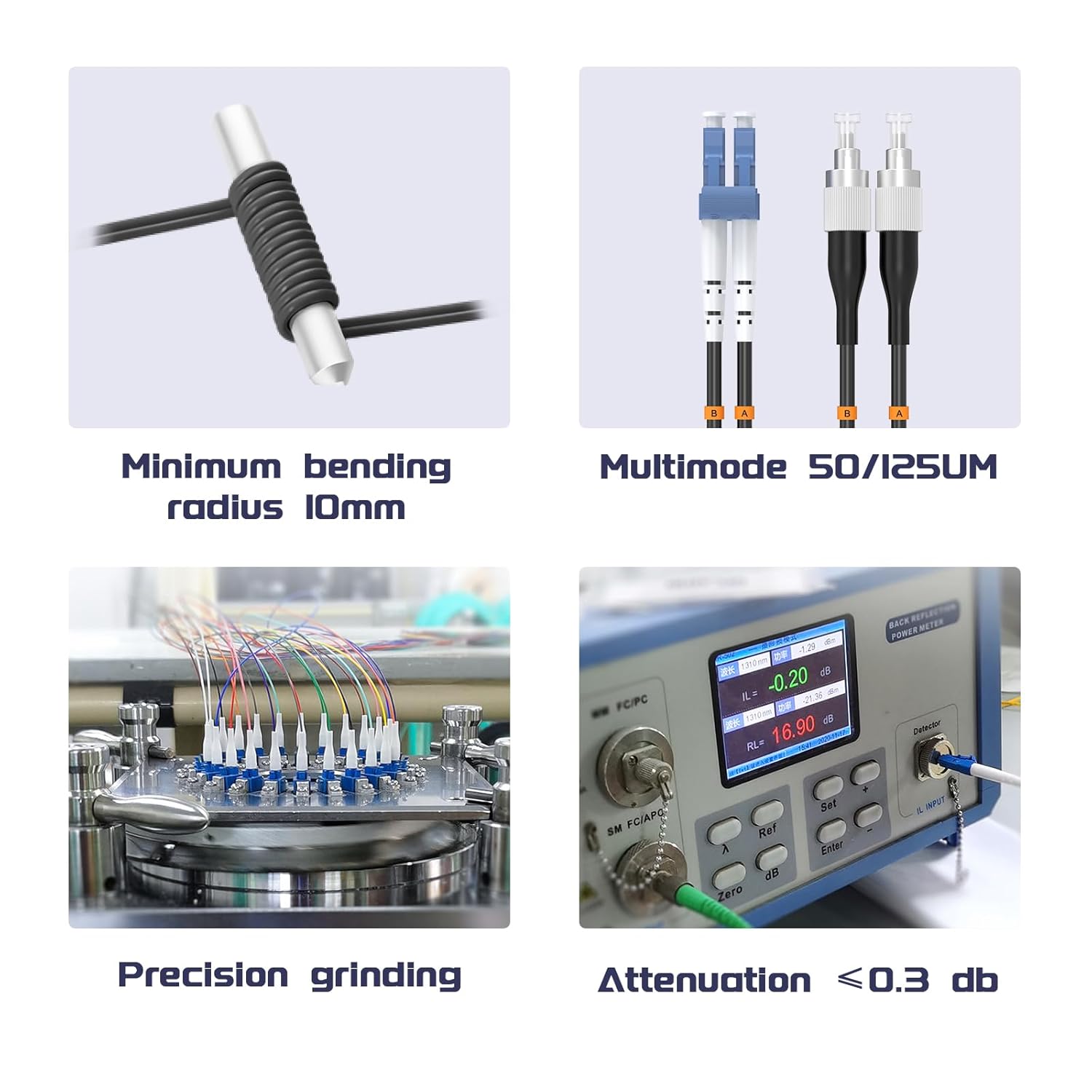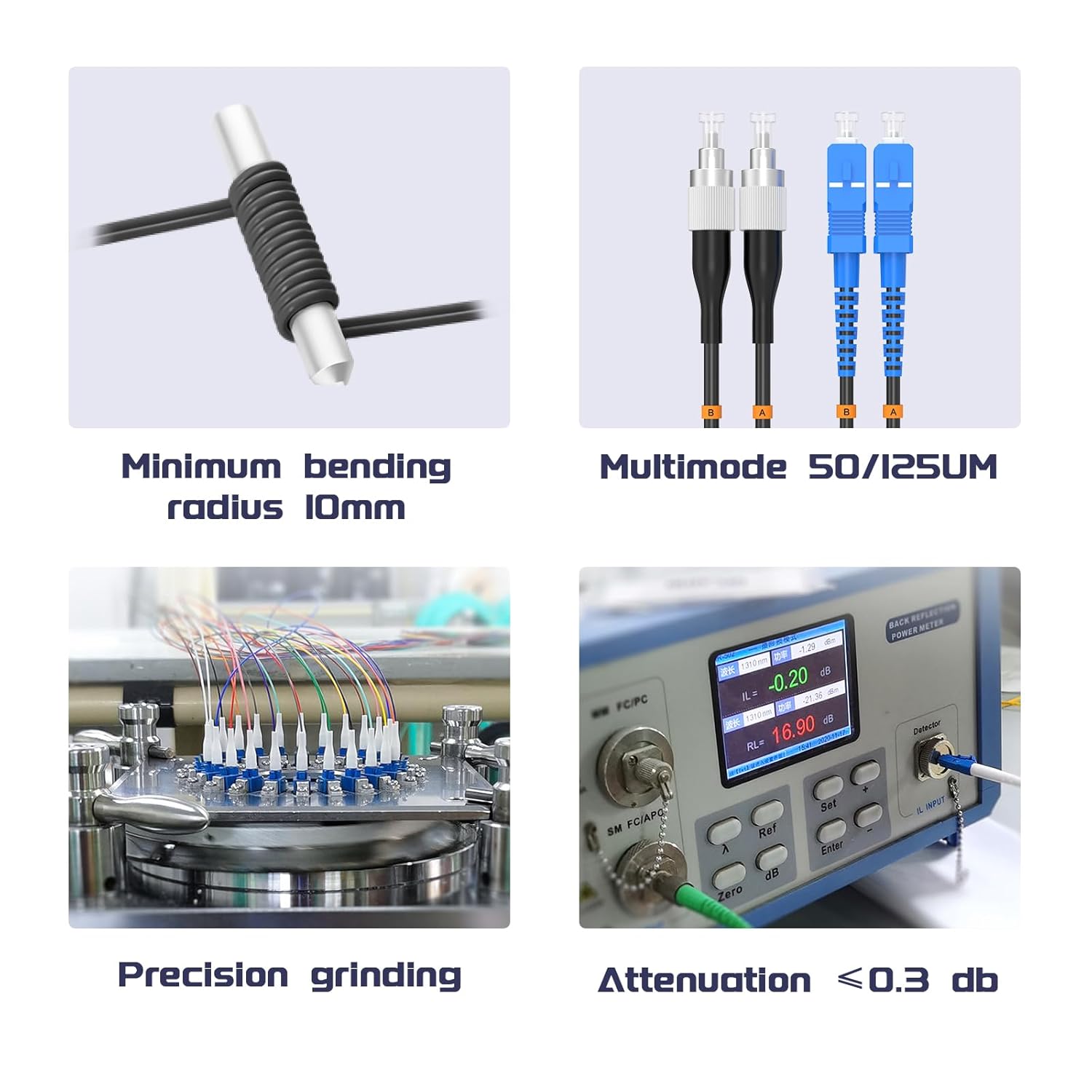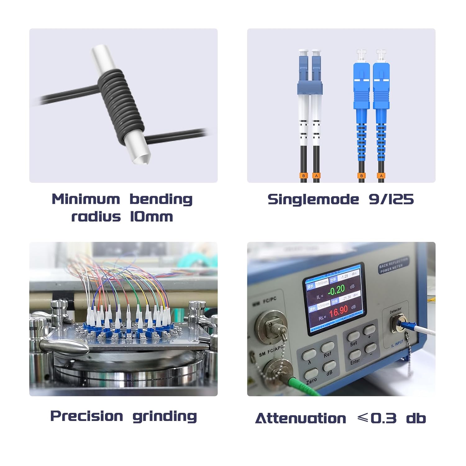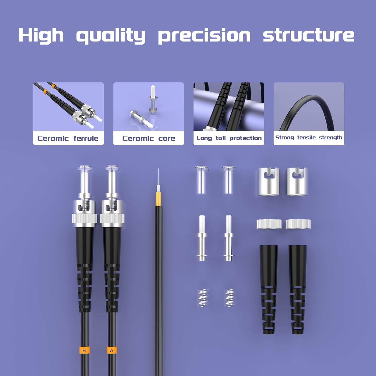 • 【High-Quality Ceramic Ferrules】 Equipped with premium ceramic ferrules, known for their high performance, stability, and durability, ensuring the stability and longevity of the fiber optic connectors.
