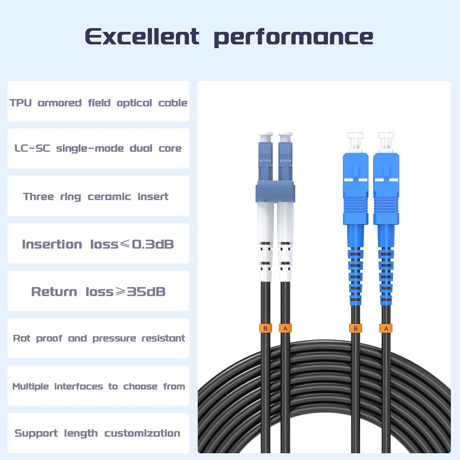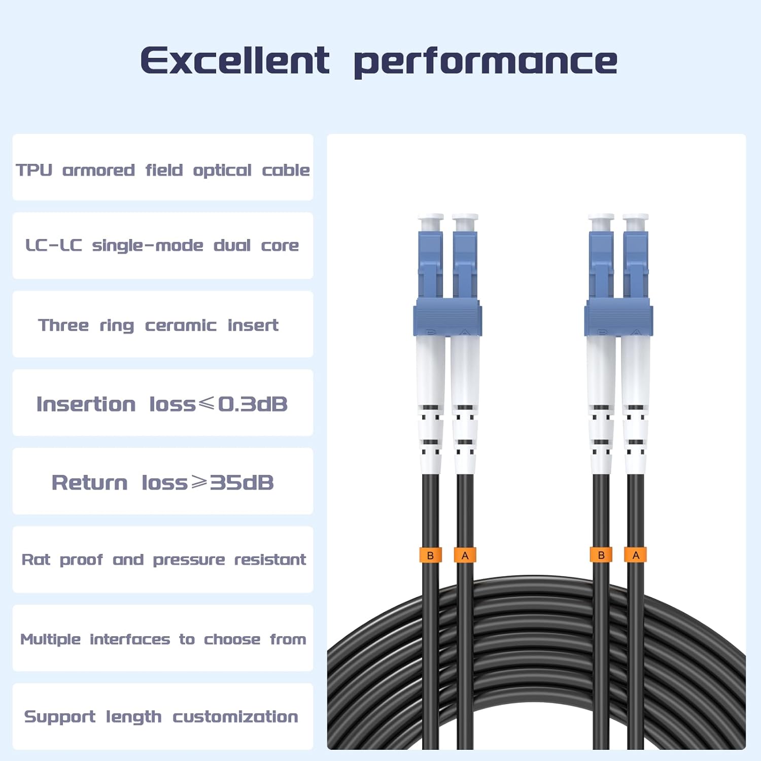 • 【Wide Application】This LC to LC outdoor fiber optic cable is ideal for building wiring, critical data center equipment connections, outdoor operations, sensing and detection, FTTX, and LAN backbone cabling in complex environments. It can connect active devices, GPON equipment to SFP transceivers, Ethernet switches, and media converters.