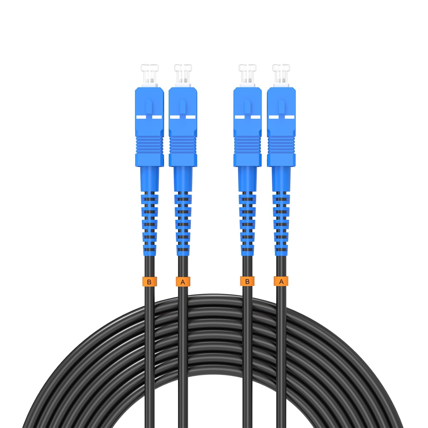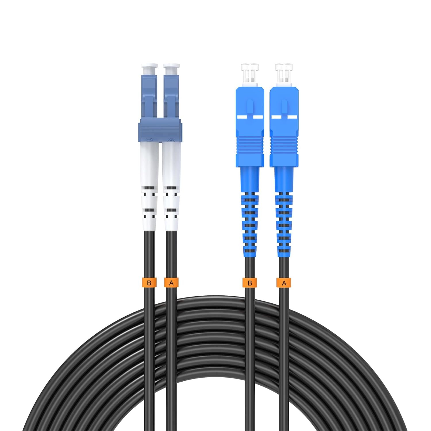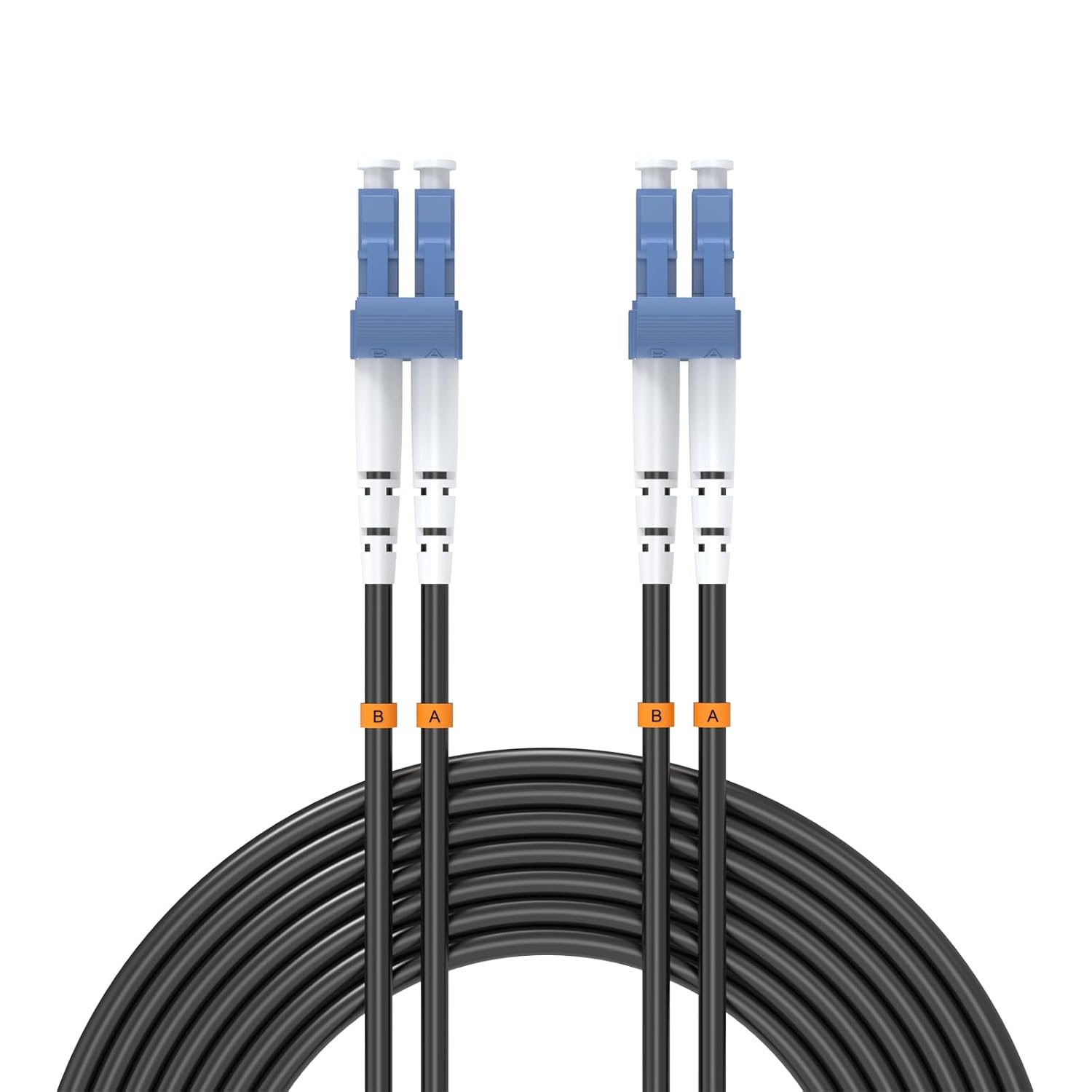• LC/UPC to LC/UPC, TPU Jacket, Duplex, Single Mode 9/125um, 7mm Cable Diameter, Industrial Outdoor Armored Fiber Optic Patch Cord