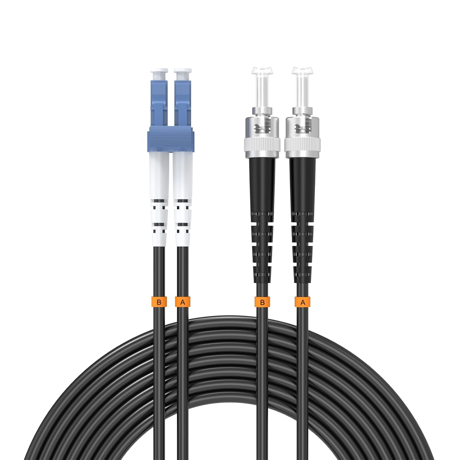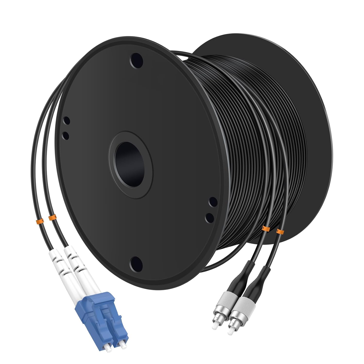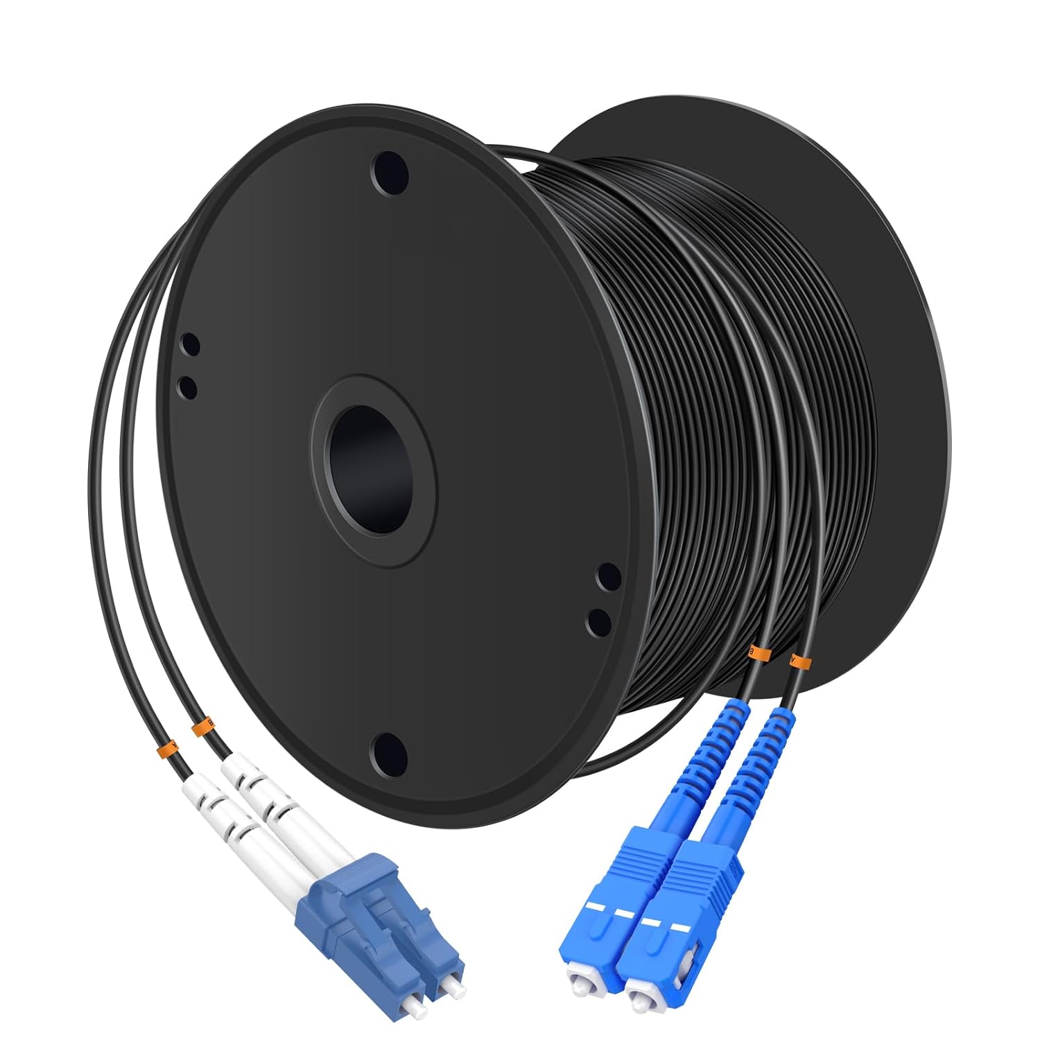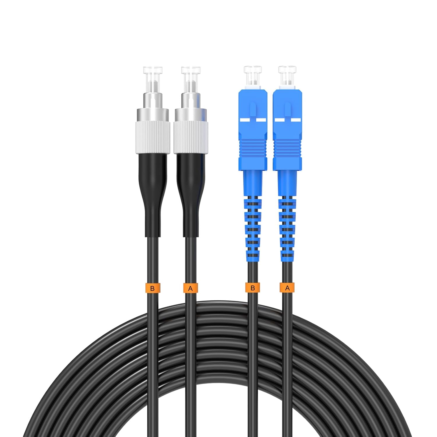 • LC/UPC to LC/UPC, TPU Jacket, Duplex, Single Mode 9/125um, 7mm Cable Diameter, Industrial Outdoor Armored Fiber Optic Patch Cord