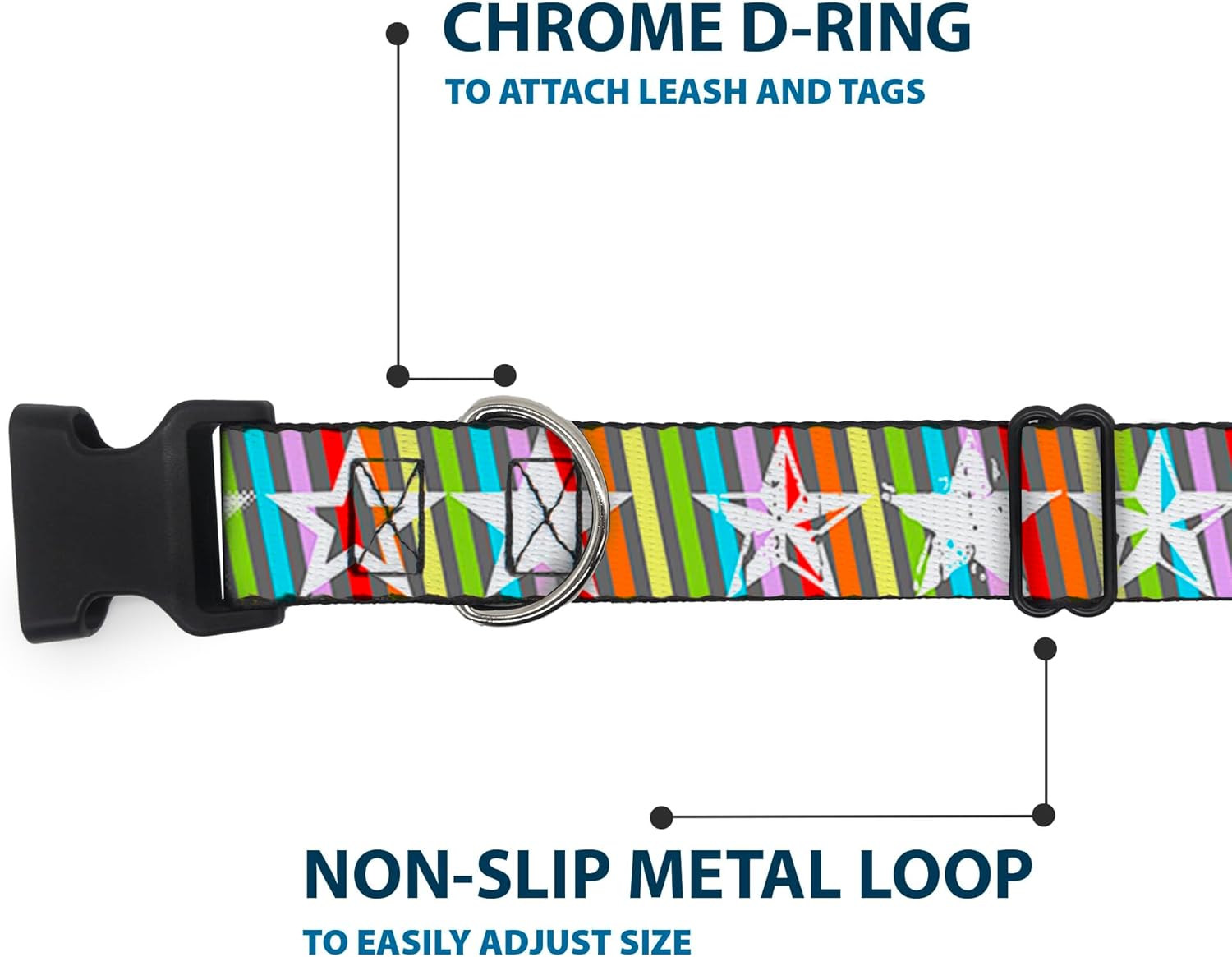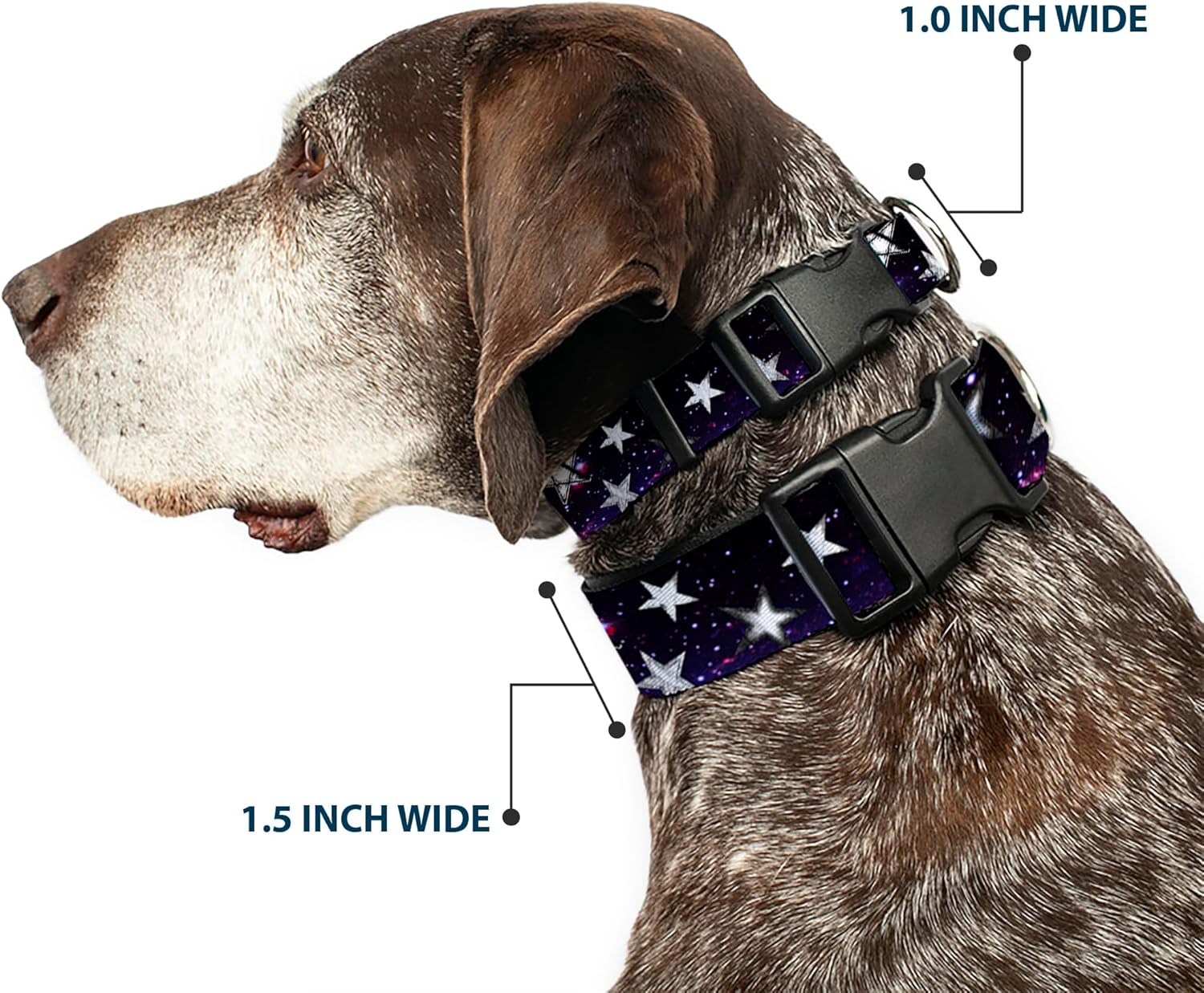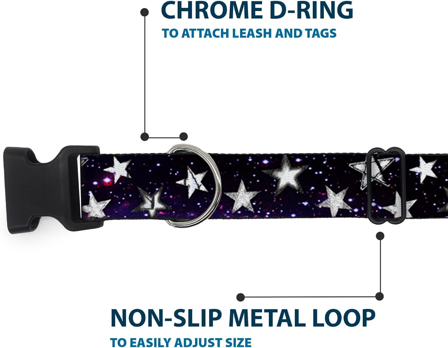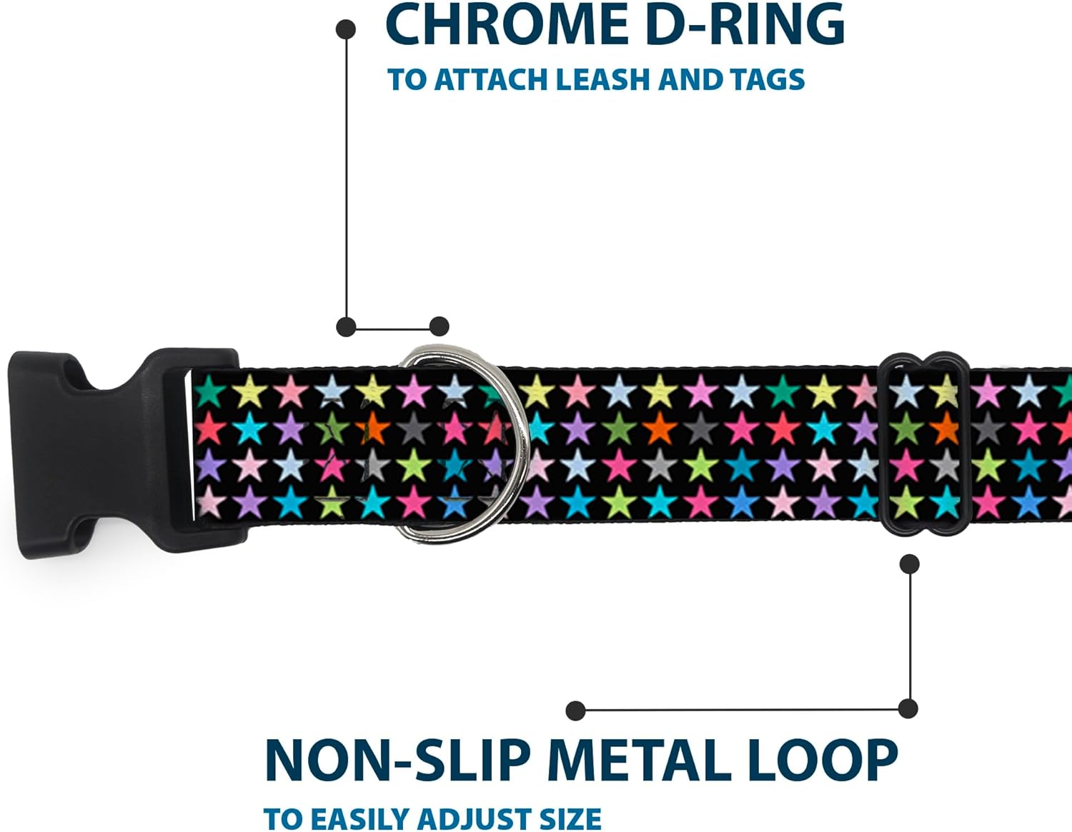 Buckle-Down PC-W21909-M Dog Collar Plastic Clip Buckle, 1"x11"-17", Star Black/White