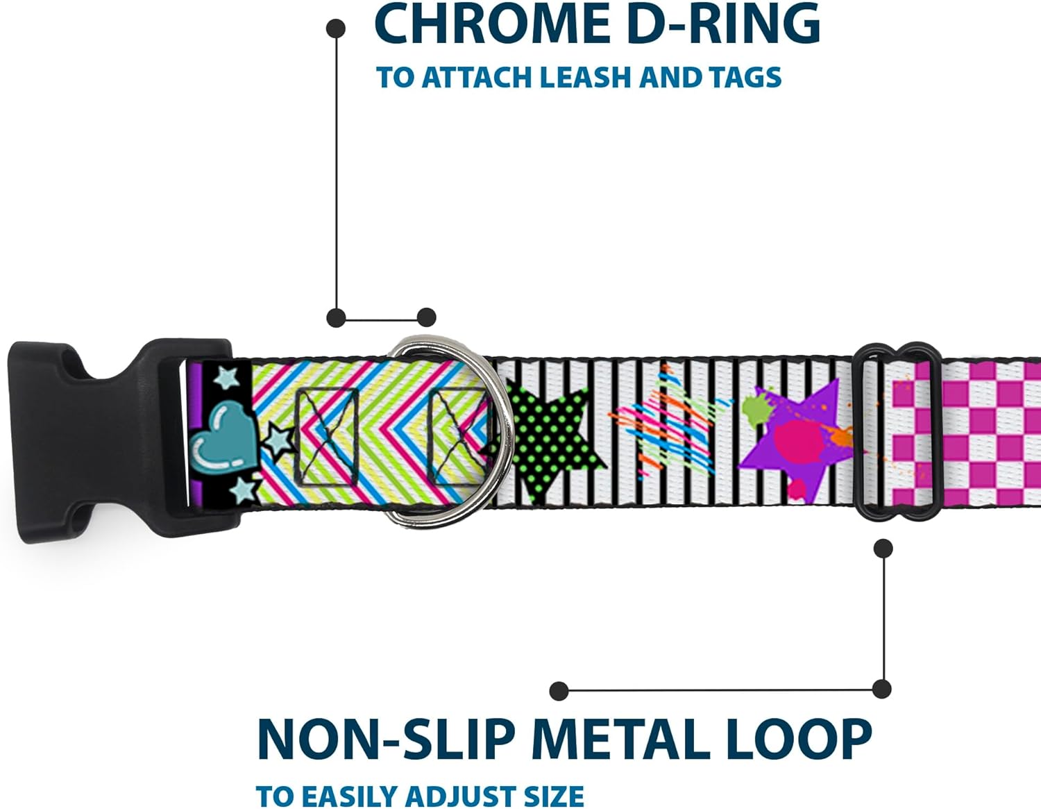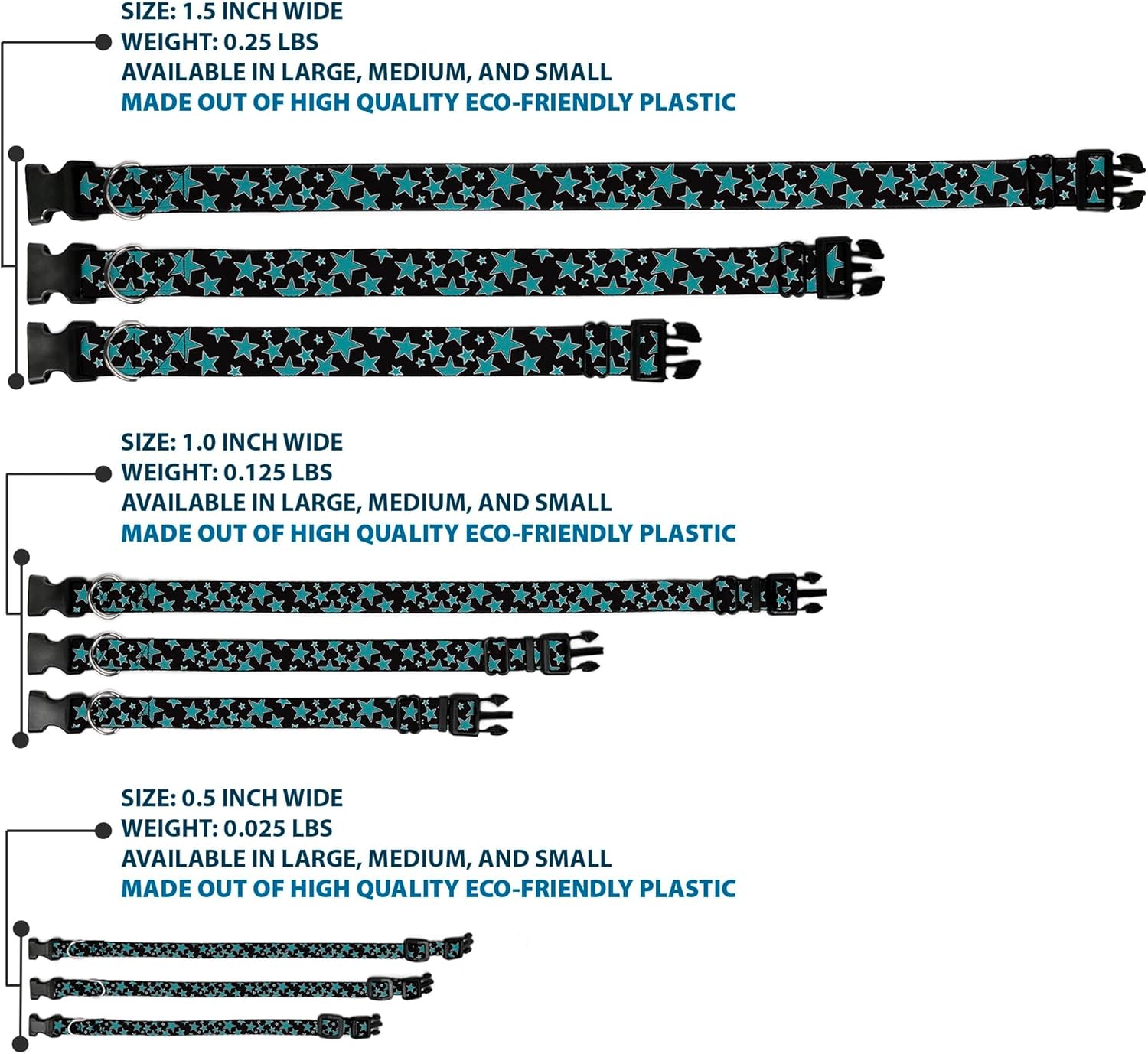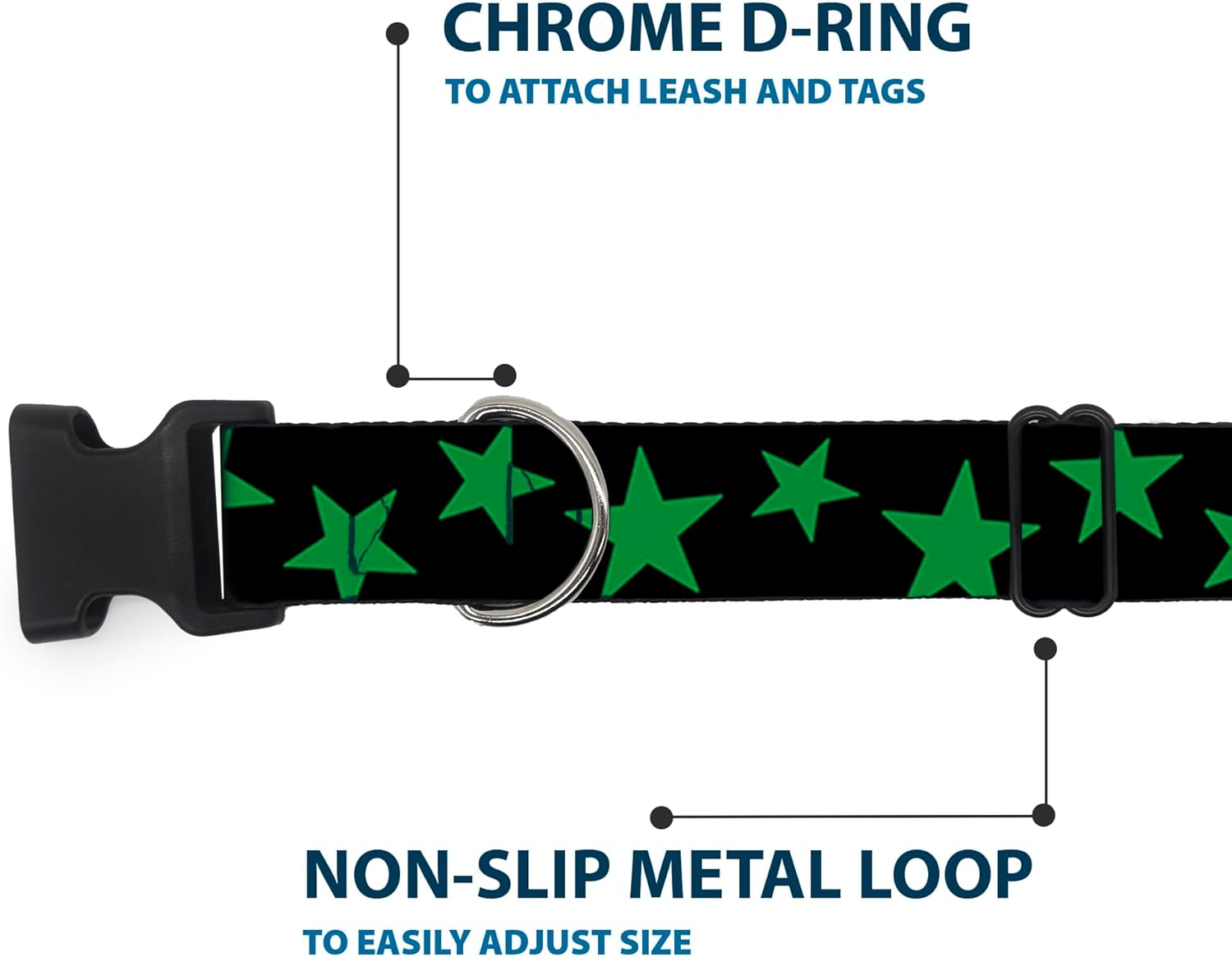 Buckle-Down PC-W21909-M Dog Collar Plastic Clip Buckle, 1"x11"-17", Star Black/White