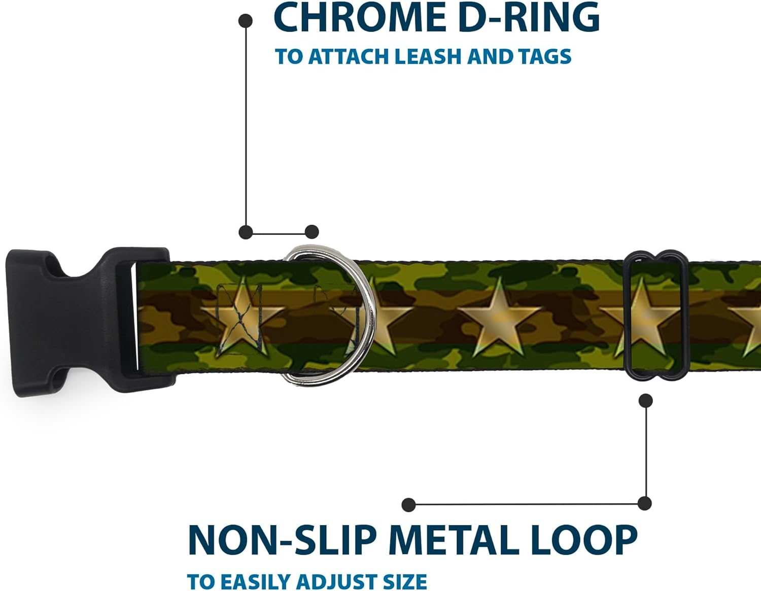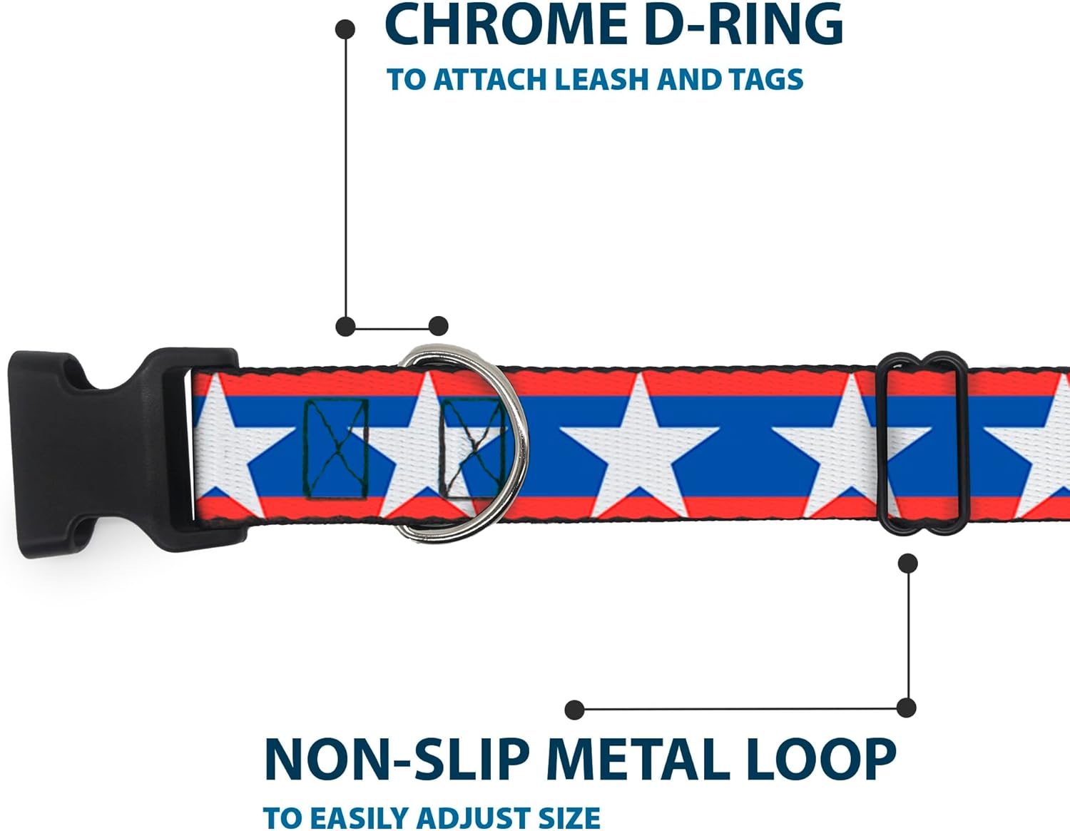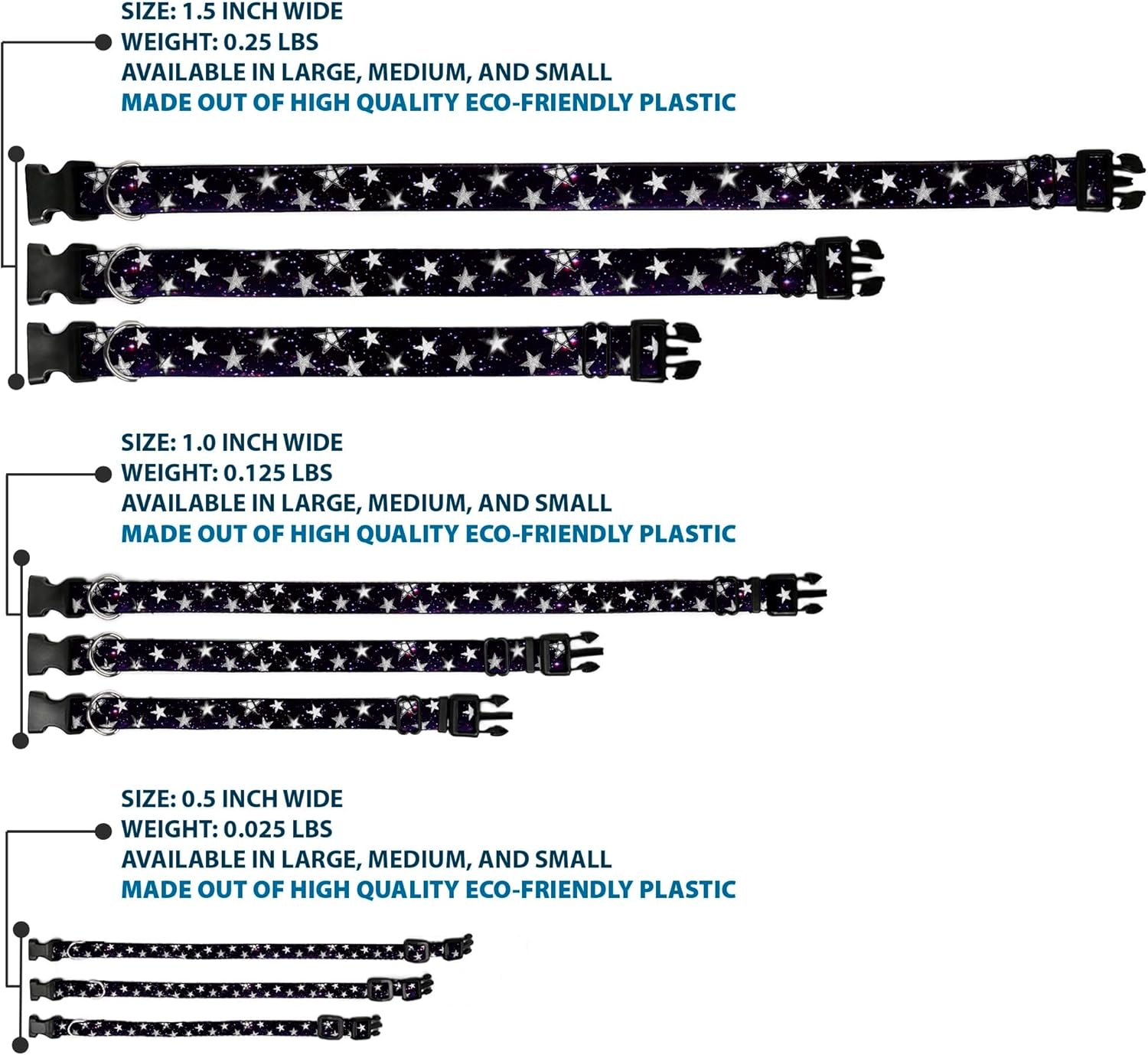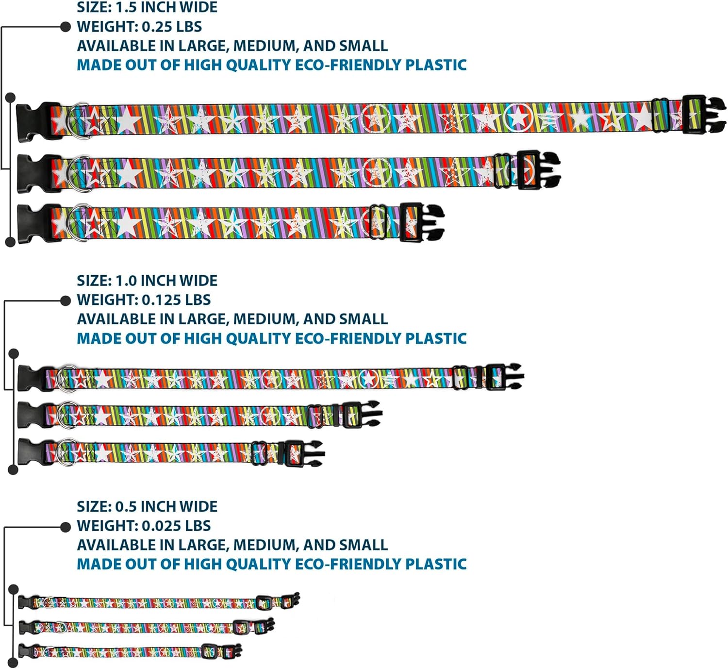Buckle-Down PC-W21909-M Dog Collar Plastic Clip Buckle, 1"x11"-17", Star Black/White