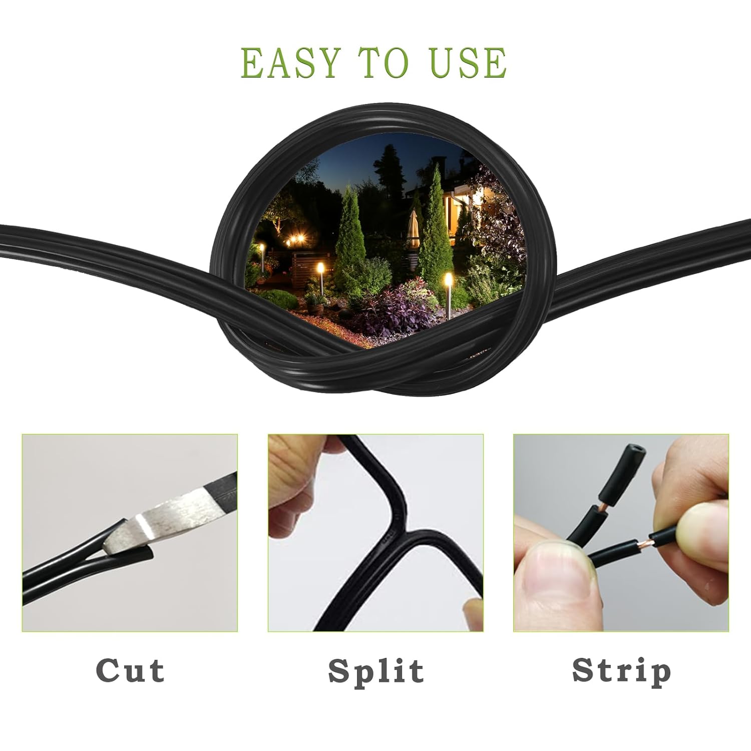 Cableague 12/2 Low Voltage Landscape Lighting Wire 250Ft 12Awg*2C Waterproof Conductor Outdoor Direct Burial 250 Feet Black 250 Feet