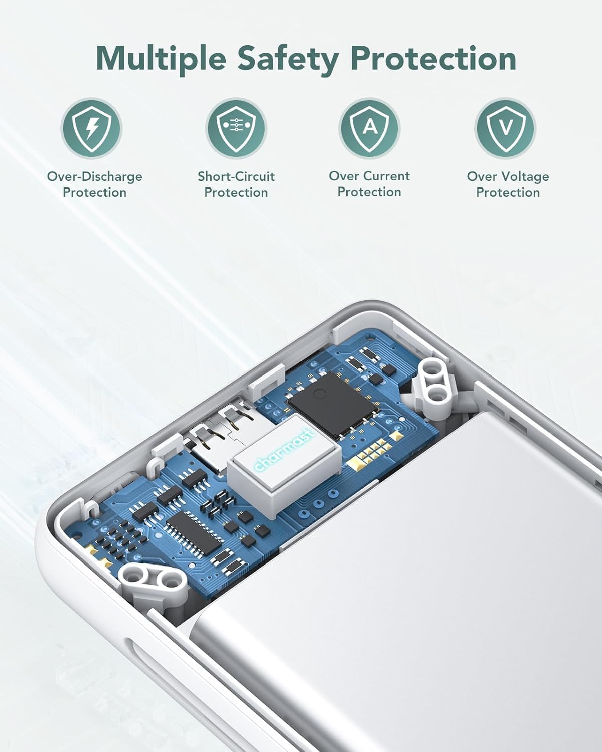 Say goodbye to tangled wires and multiple chargers with the Charmast Portable Charger. Its built-in cables make it compatible with iPhone 15/15 Plus/15 Pro/15 Pro Max, iPhone 14/13 Series, Samsung Galaxy, all cellphones, so you can travel light without worrying about charging issue.