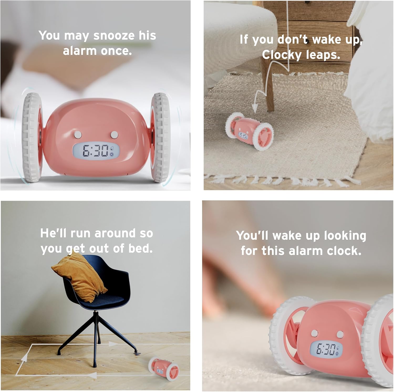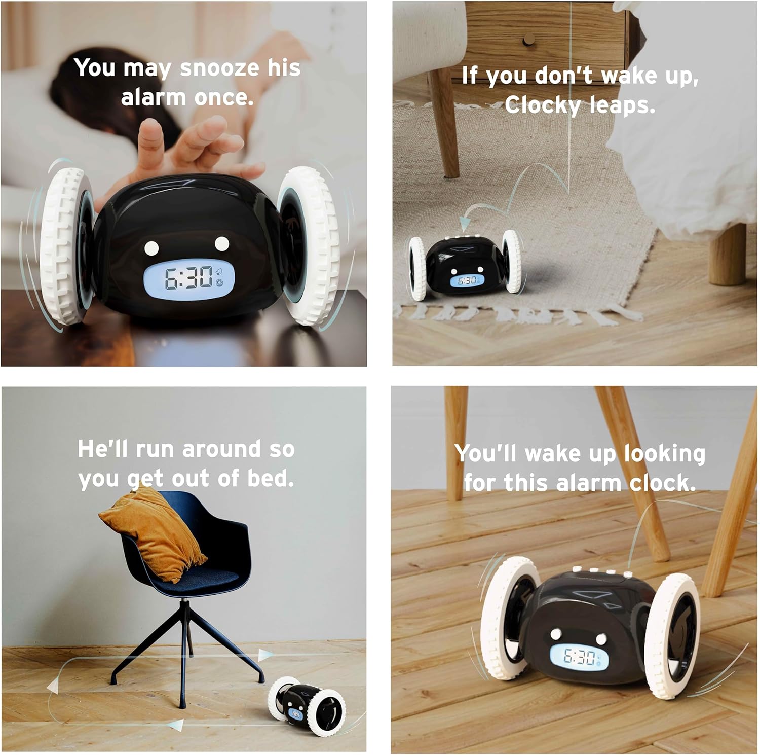- Runaway Clock On Wheels | Clocky is a super loud digital alarm clock that jumps and rolls away in your bedroom, making it the perfect heavy sleepers alarm clock. This jumping alarm clock features a very loud alarm.