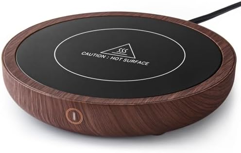 Coffee Mug Warmer, KRGMNHR Coffee Cup Warmer for Desk Use Auto Shut Off, 3-Temperature Settings, Candle Wax Warmer Heating Plate (Up to 180° F/80 °C), Wood Grain