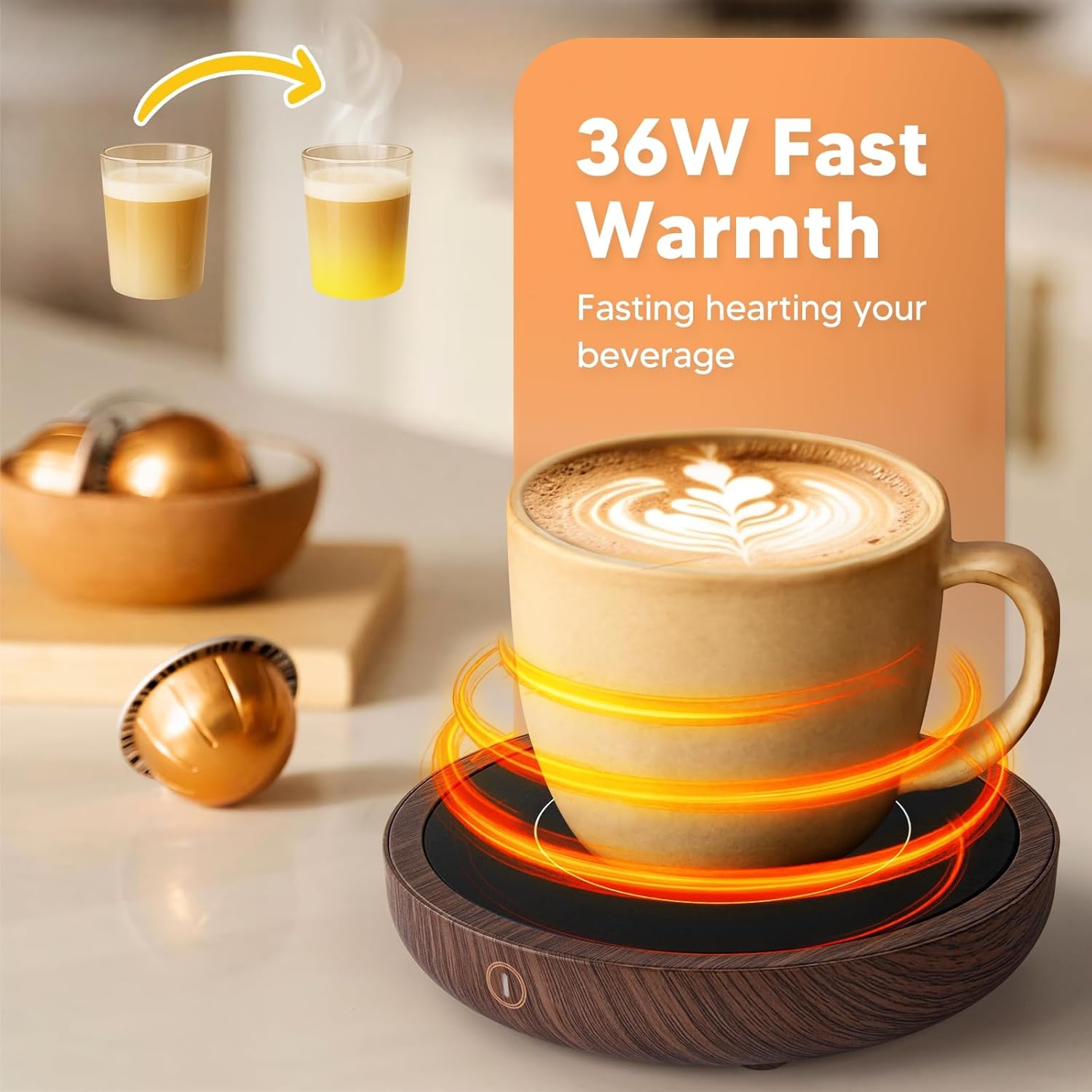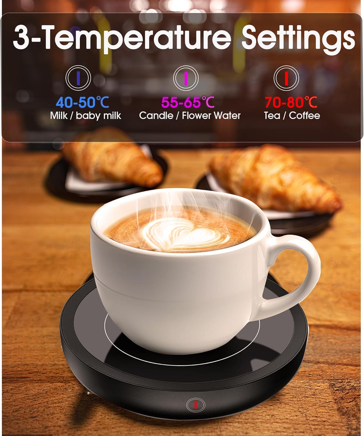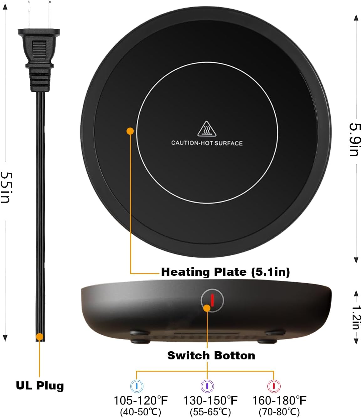 - 🔥【3-Temperature Settings: 】 36w coffee cup warmer with temperature control, you can adjust the temperature with the touch button to keep the coffee temperature at 120℉/150℉/180℉.