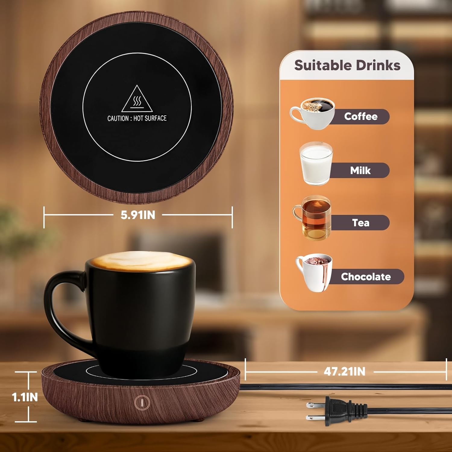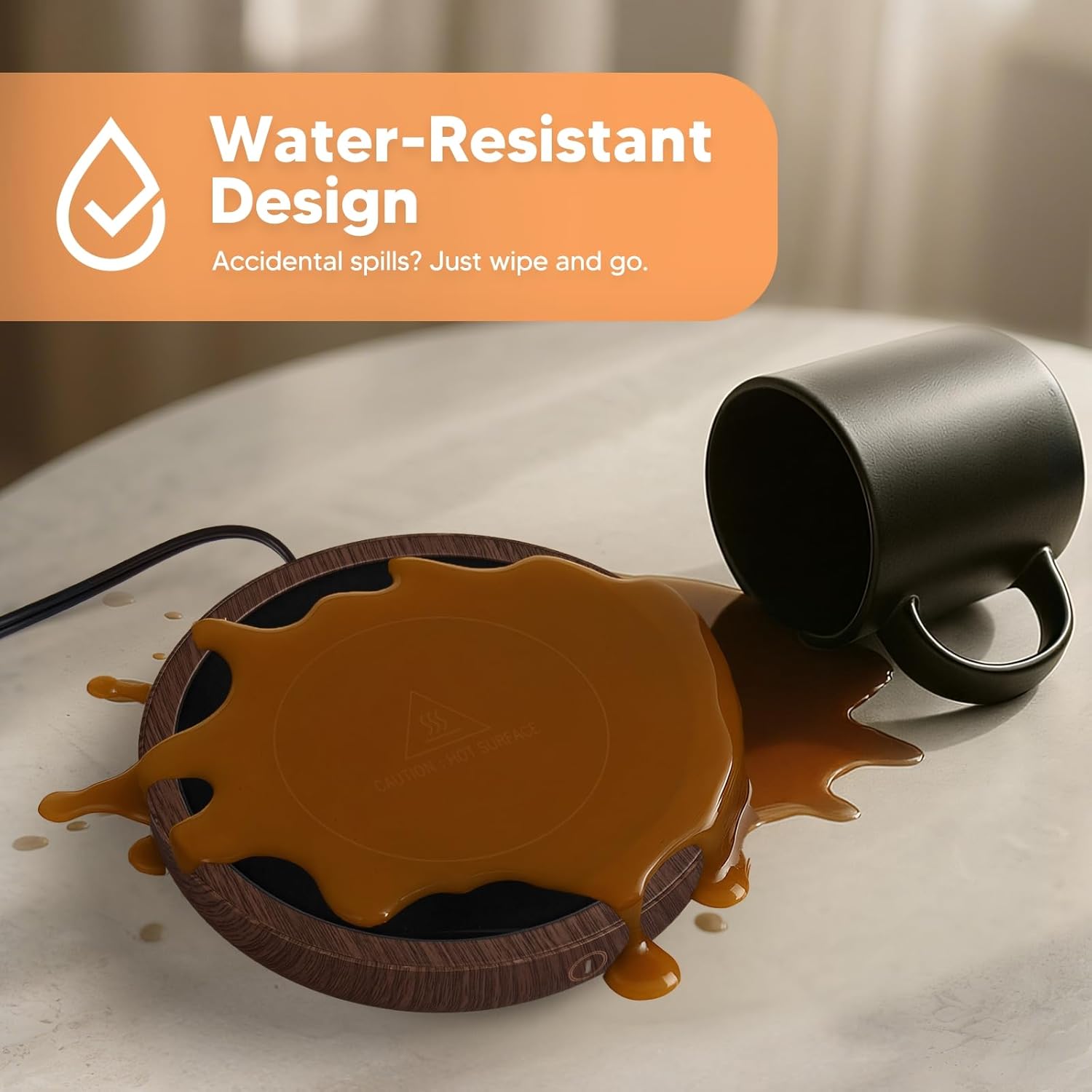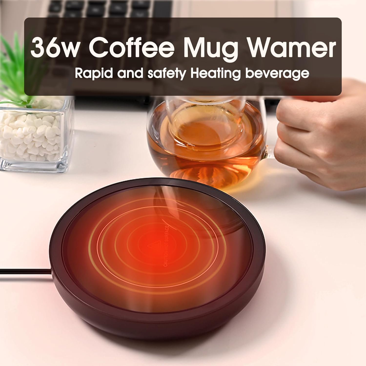 - 🔥【Waterproof Design】The coffee warmer is made of tempered glass without security concern for splashing or spilling water on the heating plate by accident and makes cleaning a breeze.