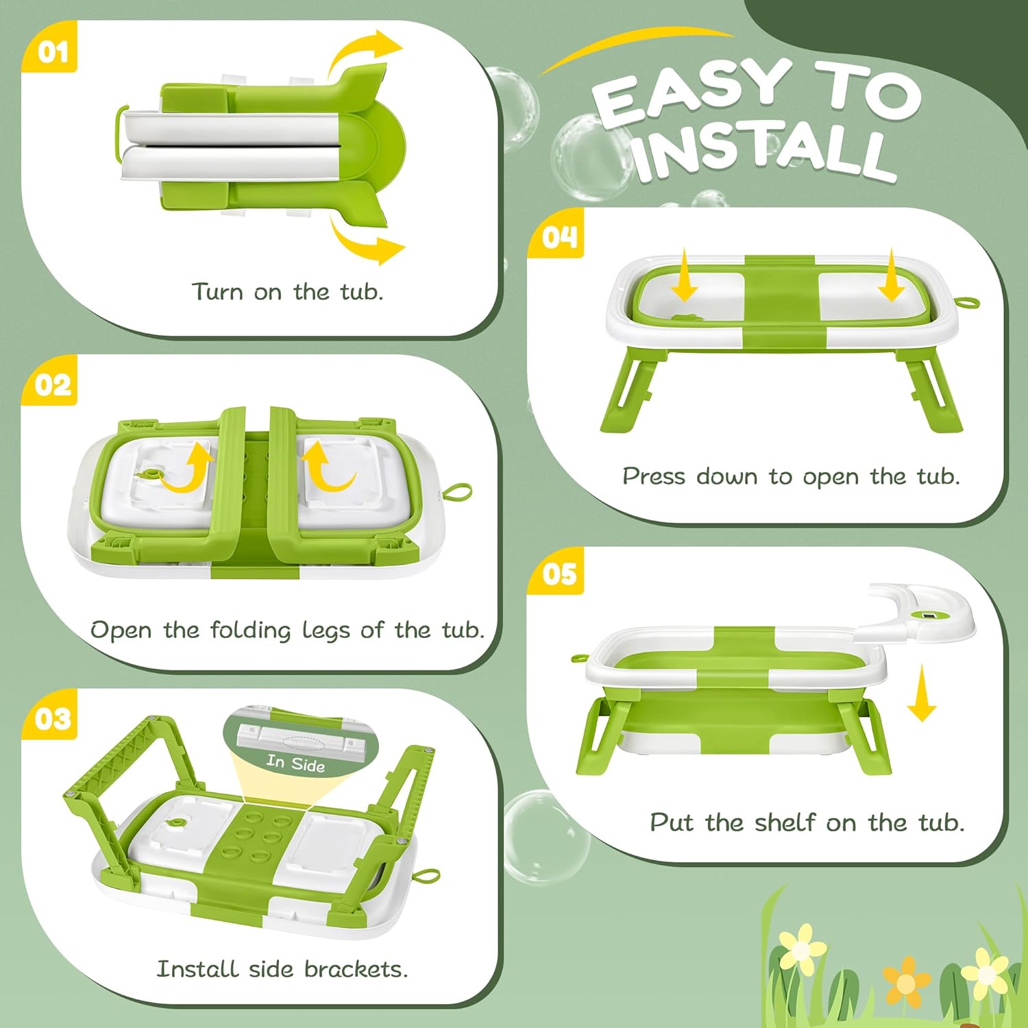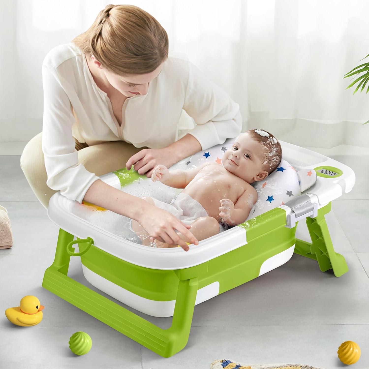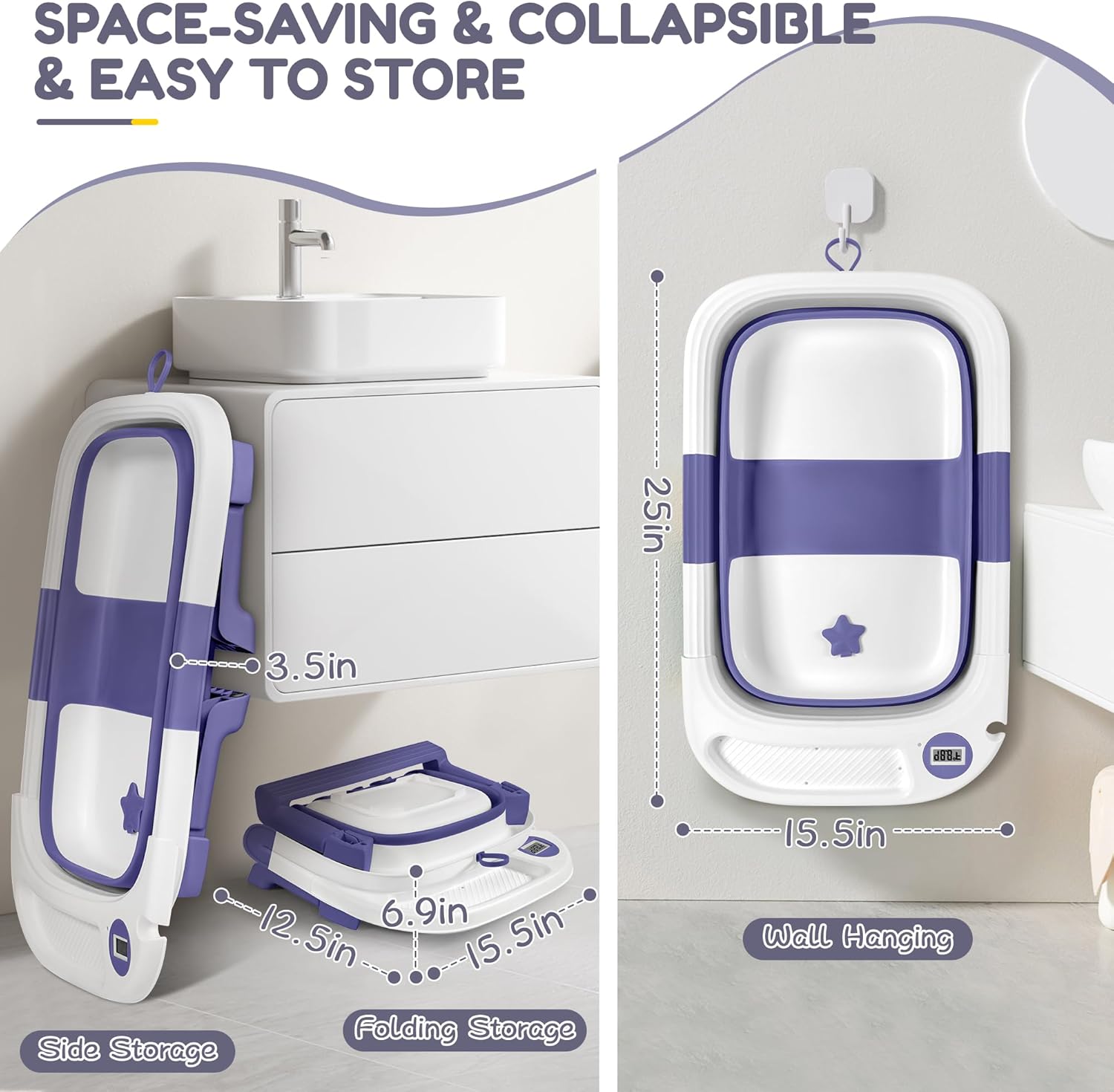 - VISUAL TEMPERATURE: Equipped with a real-time water thermometer, this portable bathtub for baby allows parents to monitor and adjust the water temperature for safe and comfortable bathing. No more guesswork—ensure your baby's bath is just right