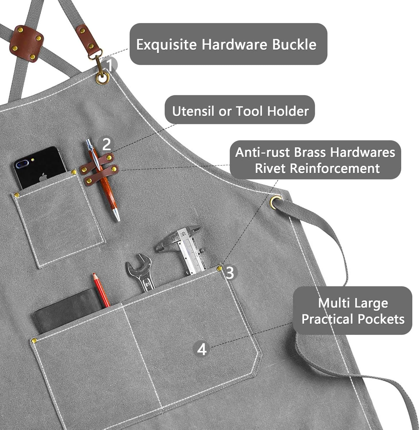 • 【Comfortable Adjustable Chef Apron】 Cotton waistband, cross back strap design. No more neck pains with our cross back straps which can adjustable M to XXL, soft and comfortable to wear. A quick release hardware buckle fastener, removable, flexible to wear.