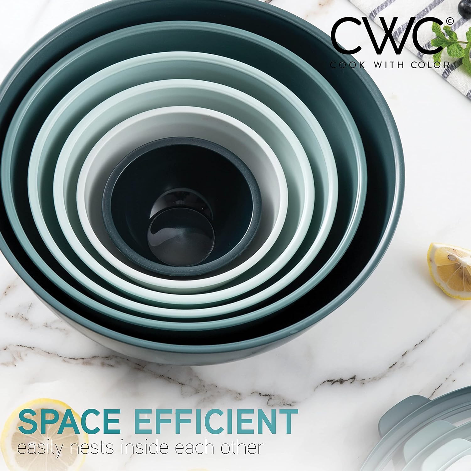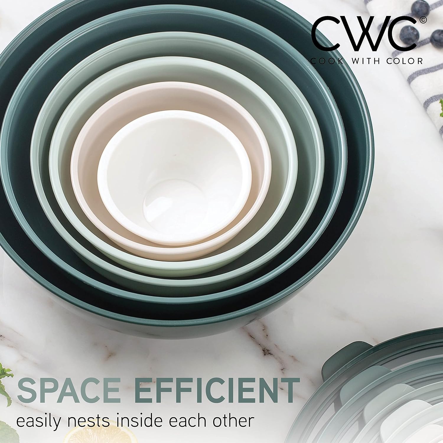 COOK WITH COLOR Mixing Bowls with TPR Lids - 12 Piece Plastic Nesting Bowls Set Includes 6 Prep Bowls and 6 Lids, Microwave Safe Mixing Bowl Set (Green)PL17-B0CQM7R934