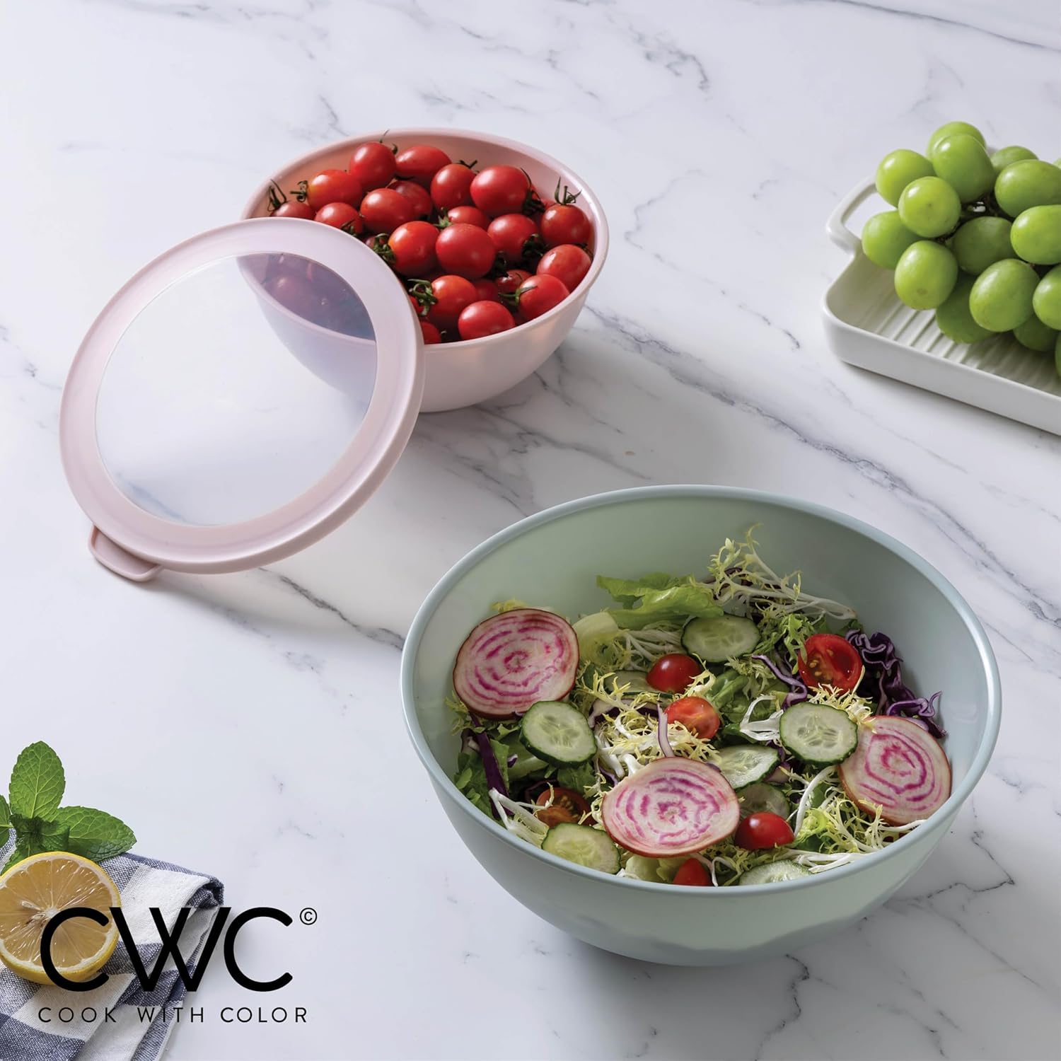 • A variety of bowls with tight fitting lids that makes storing and transporting food a breeze. Great for cut up fruit, salads, snacks and for at home and on the go.