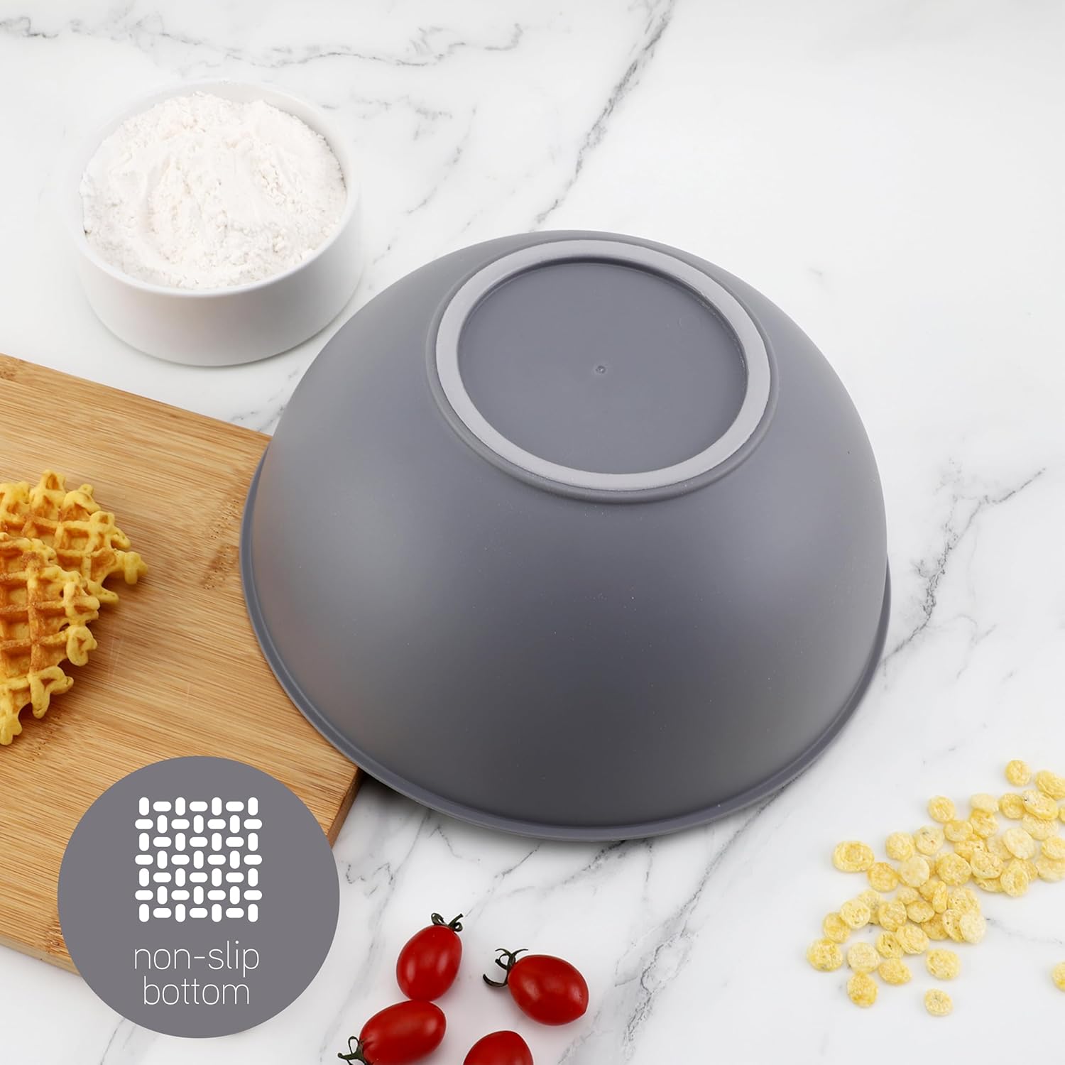• Plastic mixing bowl set made of BPA free durable polypropylene and food safe material. Top rack dishwasher safe, microwave safe and freezer safe.