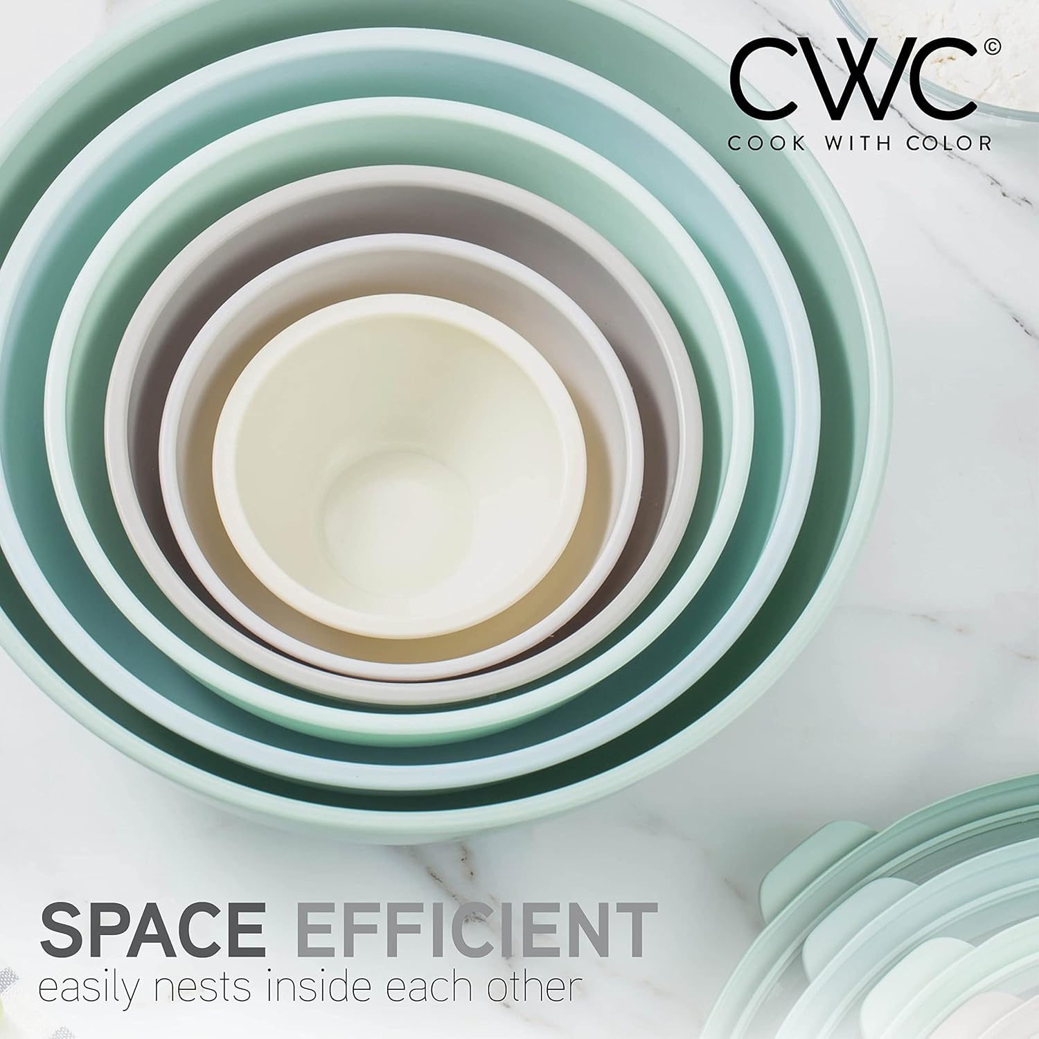 COOK WITH COLOR Mixing Bowls with TPR Lids - 12 Piece Plastic Nesting Bowls Set Includes 6 Prep Bowls and 6 Lids, Microwave Safe Mixing Bowl Set (Green)