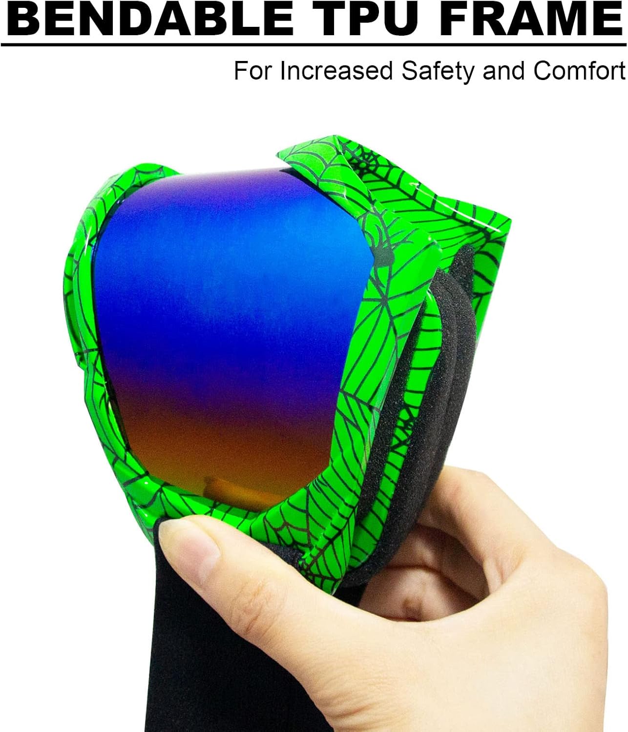 3. The racing goggles with non-slip and elastic strap are adjustable which fit most of helmets and head size for women, men, youth, kids.