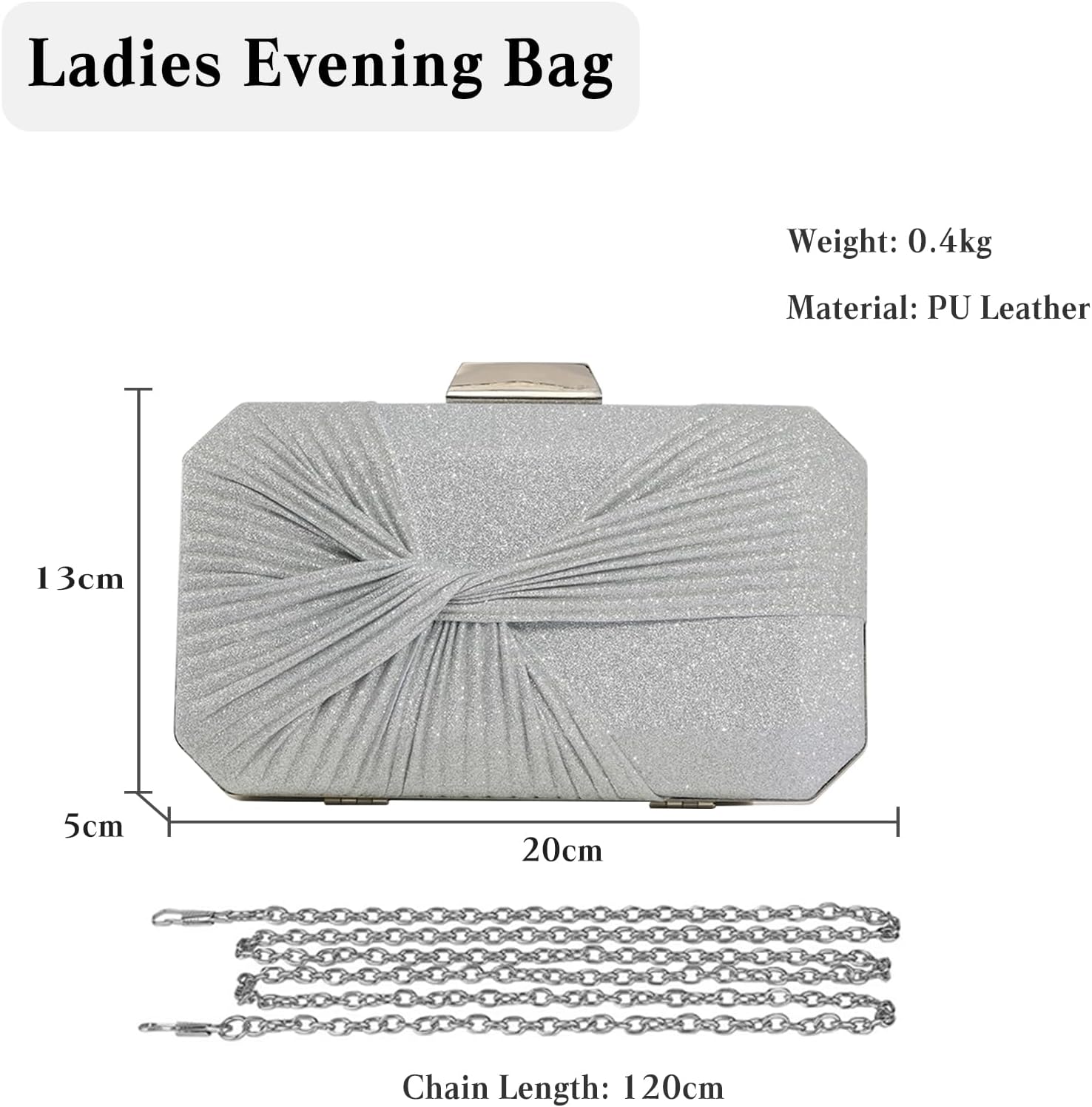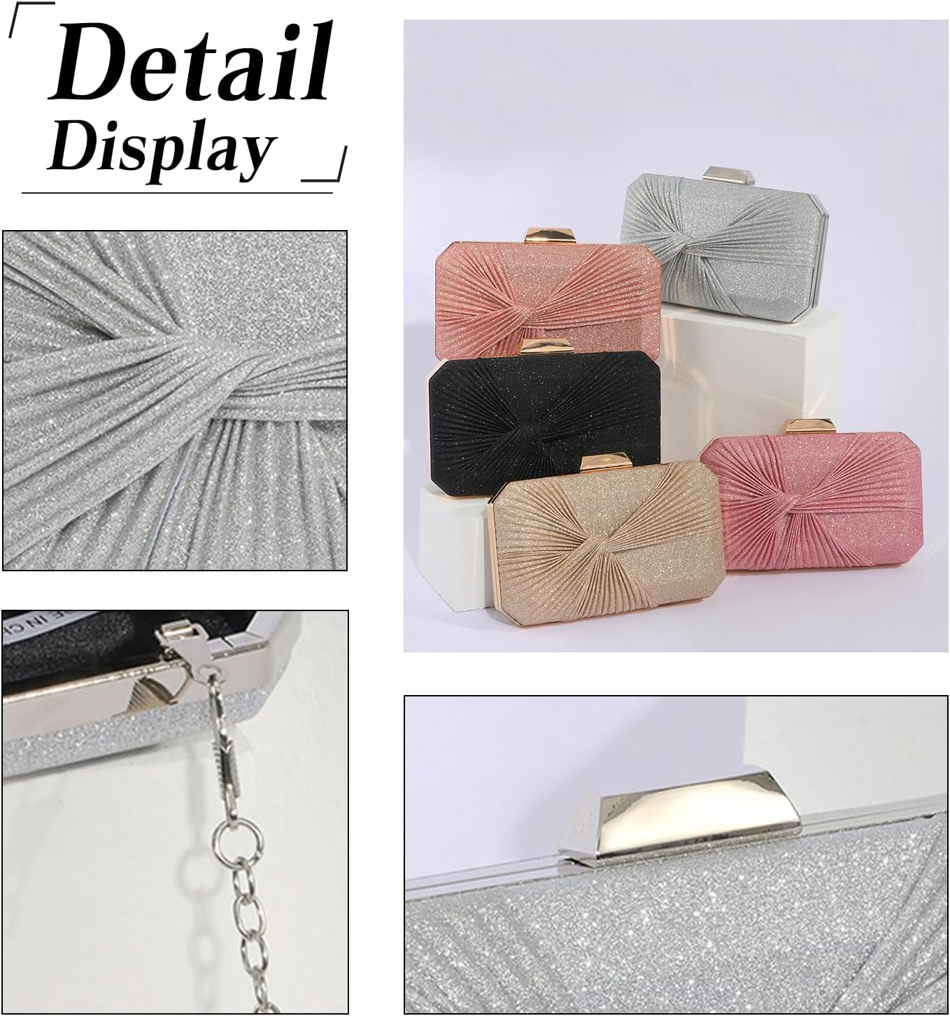➤Made of high quality sparkly glitter fabric, with classy pleated design, the clutch bag is suitable for all ages and party wears.