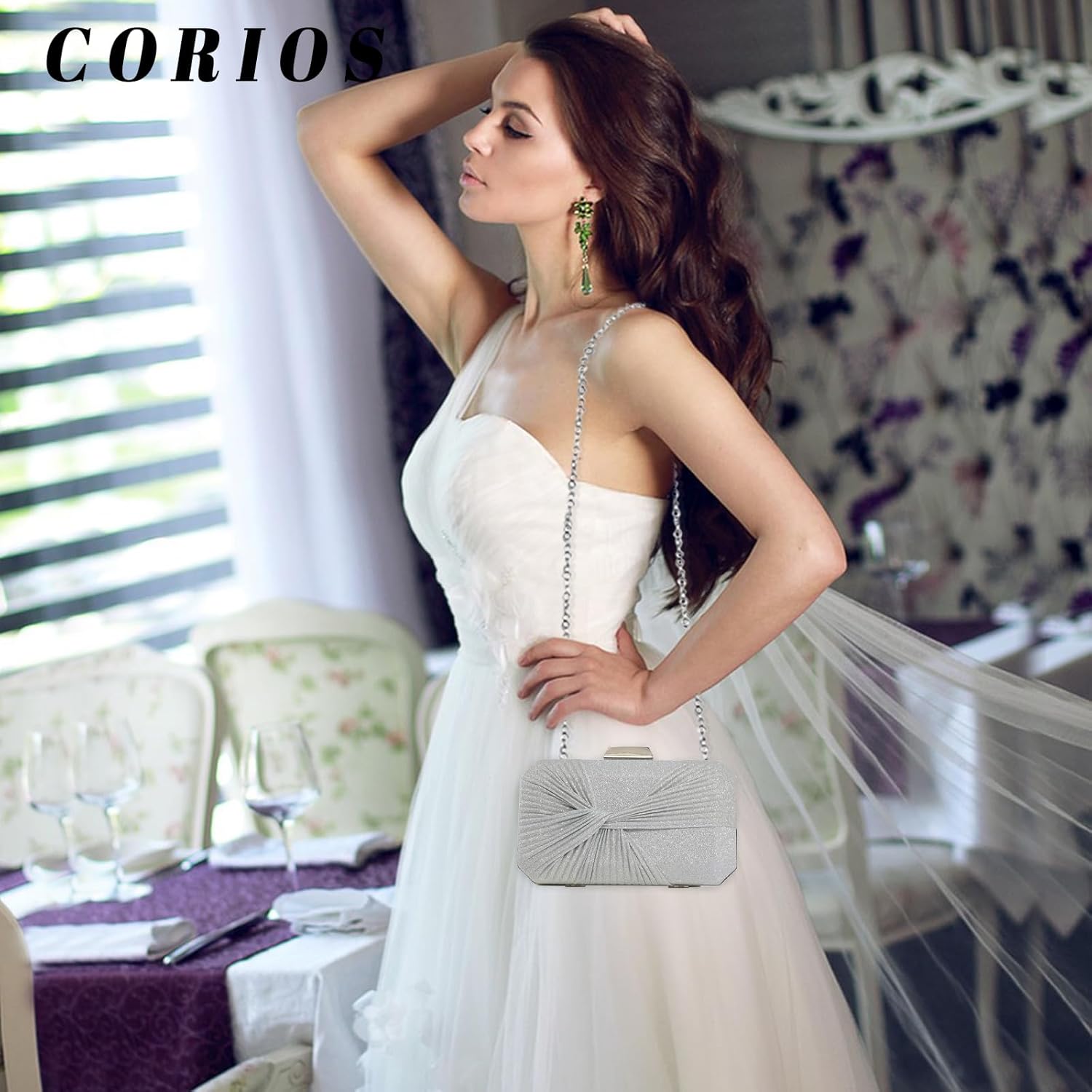 CORIOS Pleated Evening Bag Sparkly Sequin Clutch Bag for Women Sparkly Handbag Bridal Wedding Purse Elegant Cross body Bag