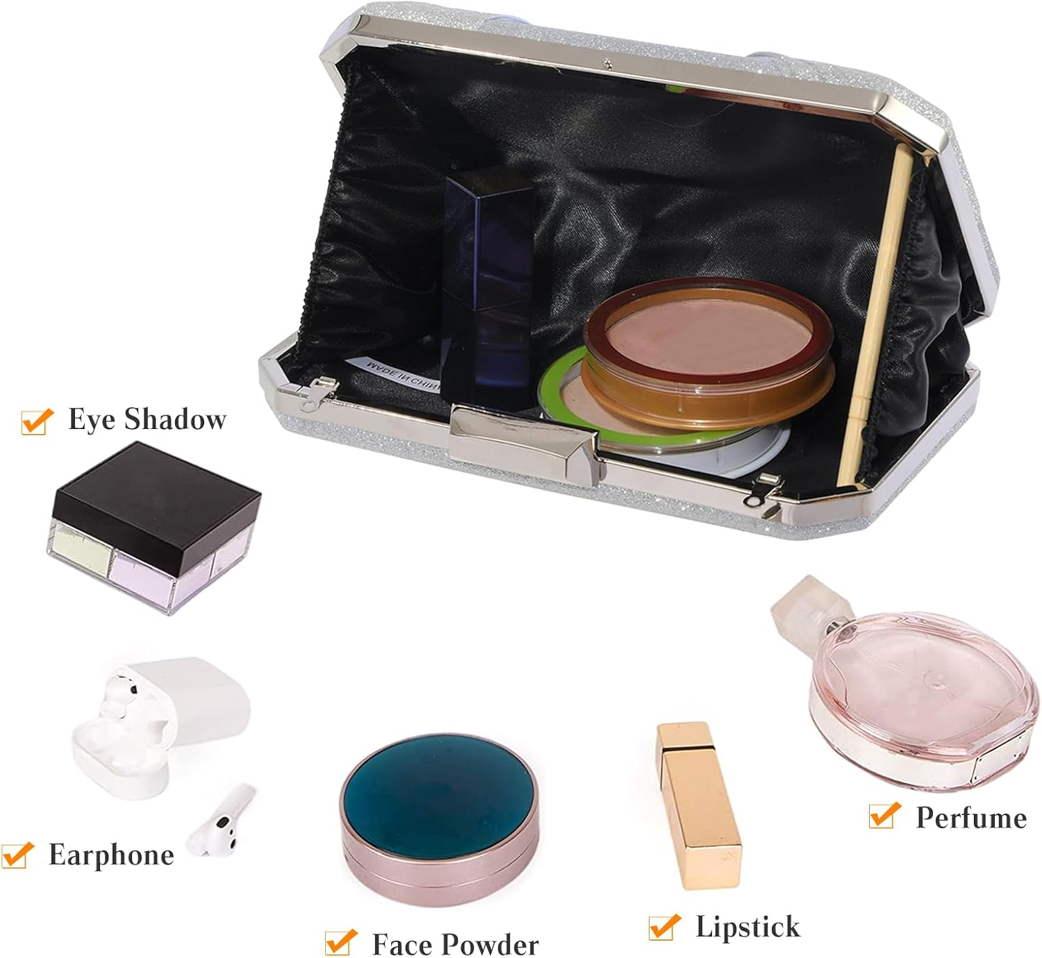 ✨【Premium Material】The glitter clutch bag is made of high-quality glitter fabric, with sparkly sequin decoration, a durable metal frame and a detachable chain. Durable buckle closure at the top, easy for opening and closing while adding the security of the stuff inside. The clutch bag comes with a detachable chain. Put the chain inside and use it as an clutch purse. Or Free your hands with hidden-clasp detachable chain strap to wear as a shoulder/crossbody bag.