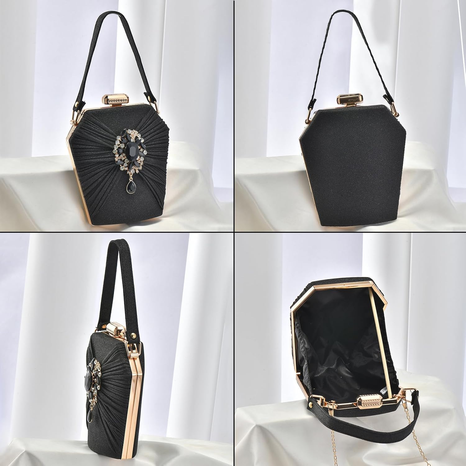 - 💧Elegant & Exquisite--The combination of high-quality glitter ruched surface and soft lining is the most popular elements at the moment and is the perfect clutch to match your evening shoes and dress. Glitter ruched fabric with rhinestones design, make the purses look fashionable and noble, suitable for all ages. The evening bag will make you look charming and become a compelling focus.