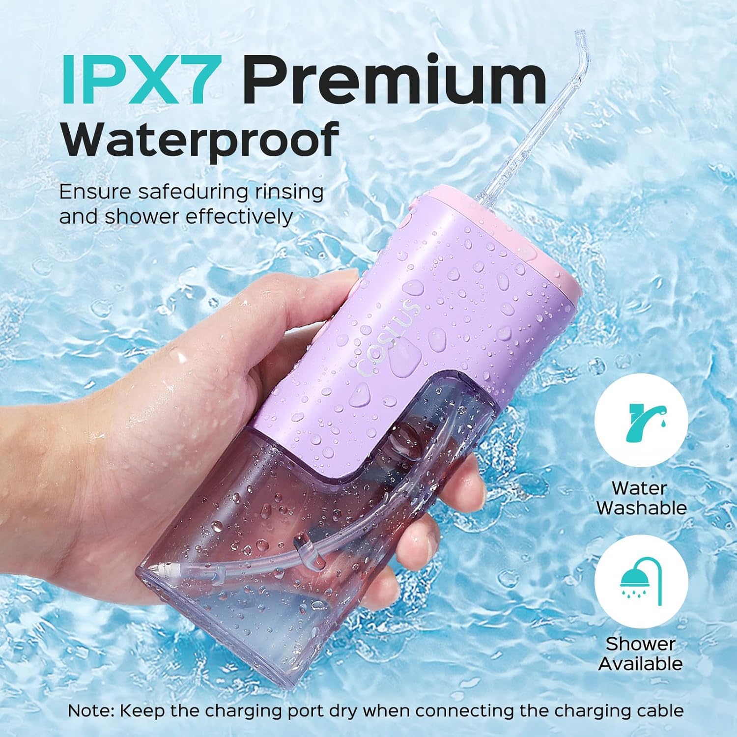 Nozzle Storage & 30-Day Battery Life, Travel-Ready Upgrade: COSLUS cordless mini flossing machine for teeth features built-in top nozzle storage, Keeps nozzles clean and accessible during travel—no dirt, breakage, or loss. 3-hour quick charge delivers 30-day runtime. Focus on enhance traditional travel flossers performance—eliminate frequent charging and extend the nozzle life