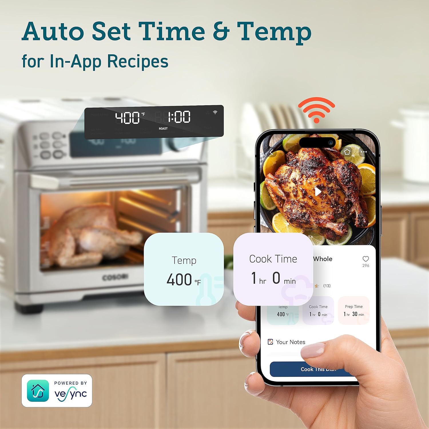 COSORI Toaster Oven Air Fryer Combo, 11-in-1, 26QT Convection Oven Countertop, Stainless Steel with Toast Bake and Broil, Smart, 6 Slice Toast, 12'' Pizza, 75 Recipes&Accessories