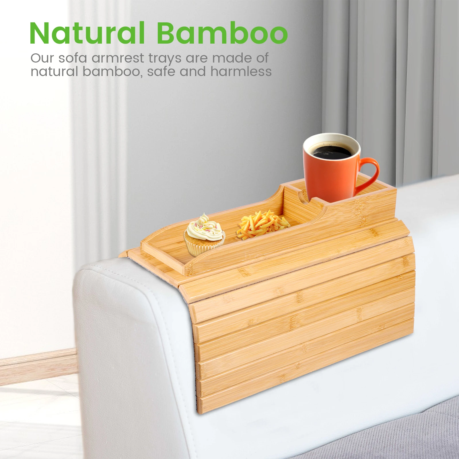 Purilite Select Couch Cup Holder | Bamboo Sofa Armrest Tray | Anti-Slip Foldable Side Table | Multifunctional Sofa Organizer | Living Room Accessory