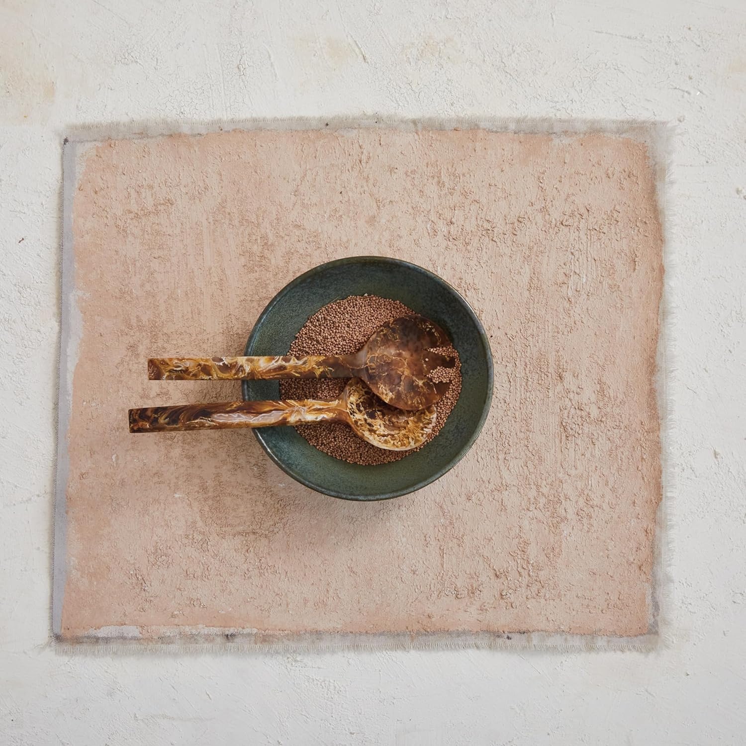 Creative Co-Op Resin Salad Servers with Matte Marble Finish, Brown, Set of 2