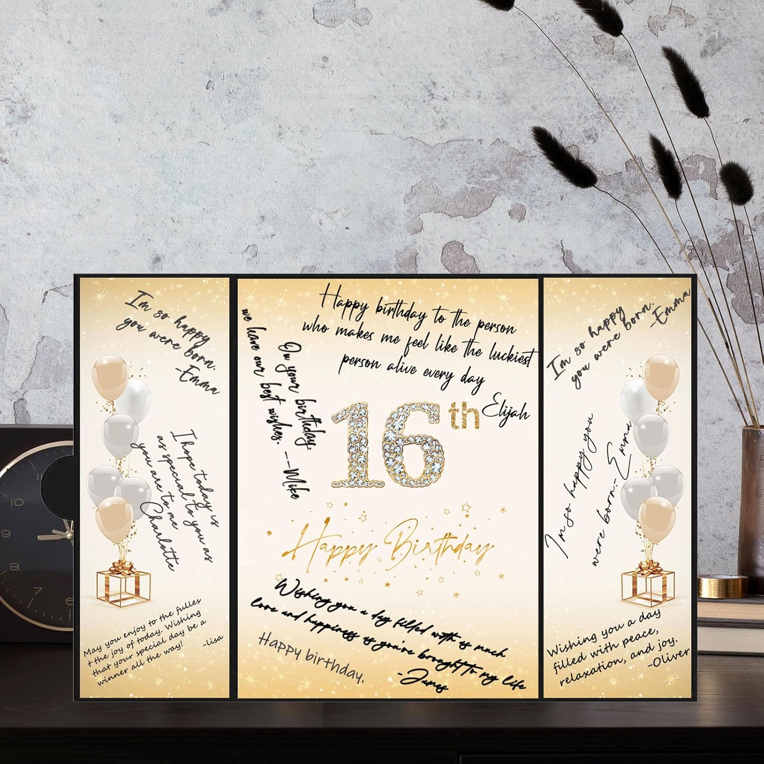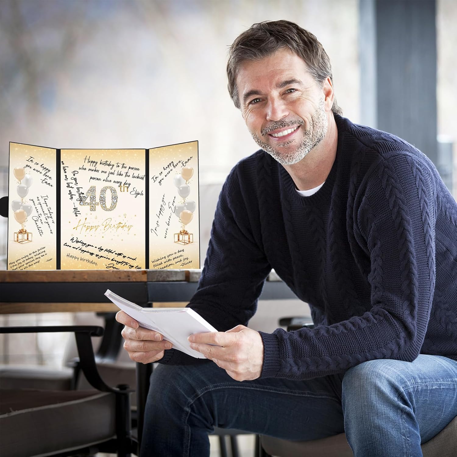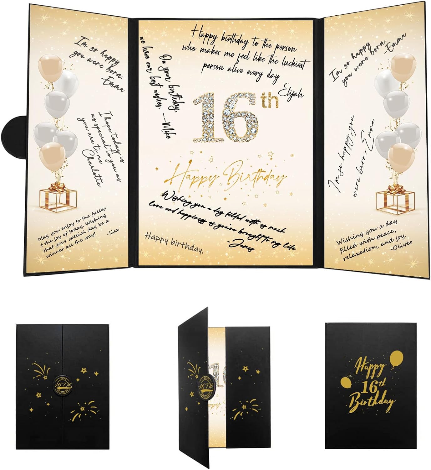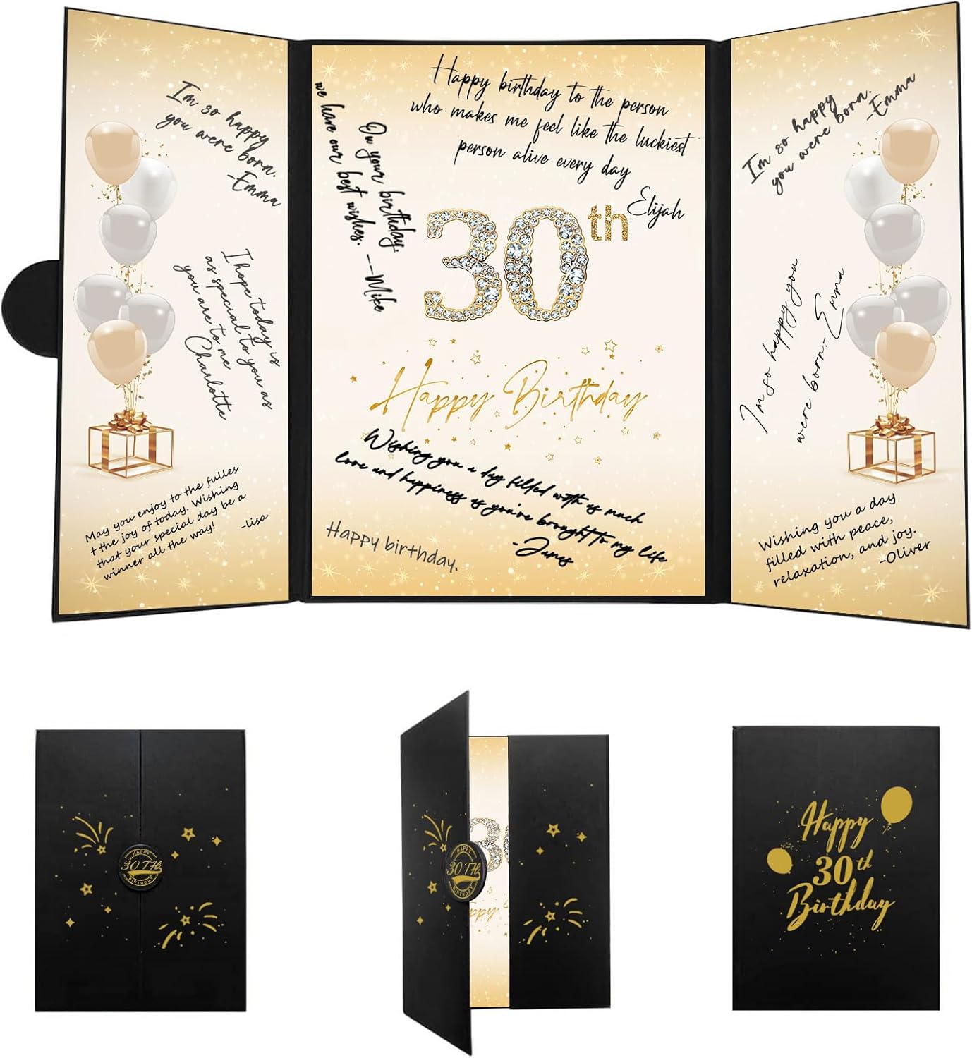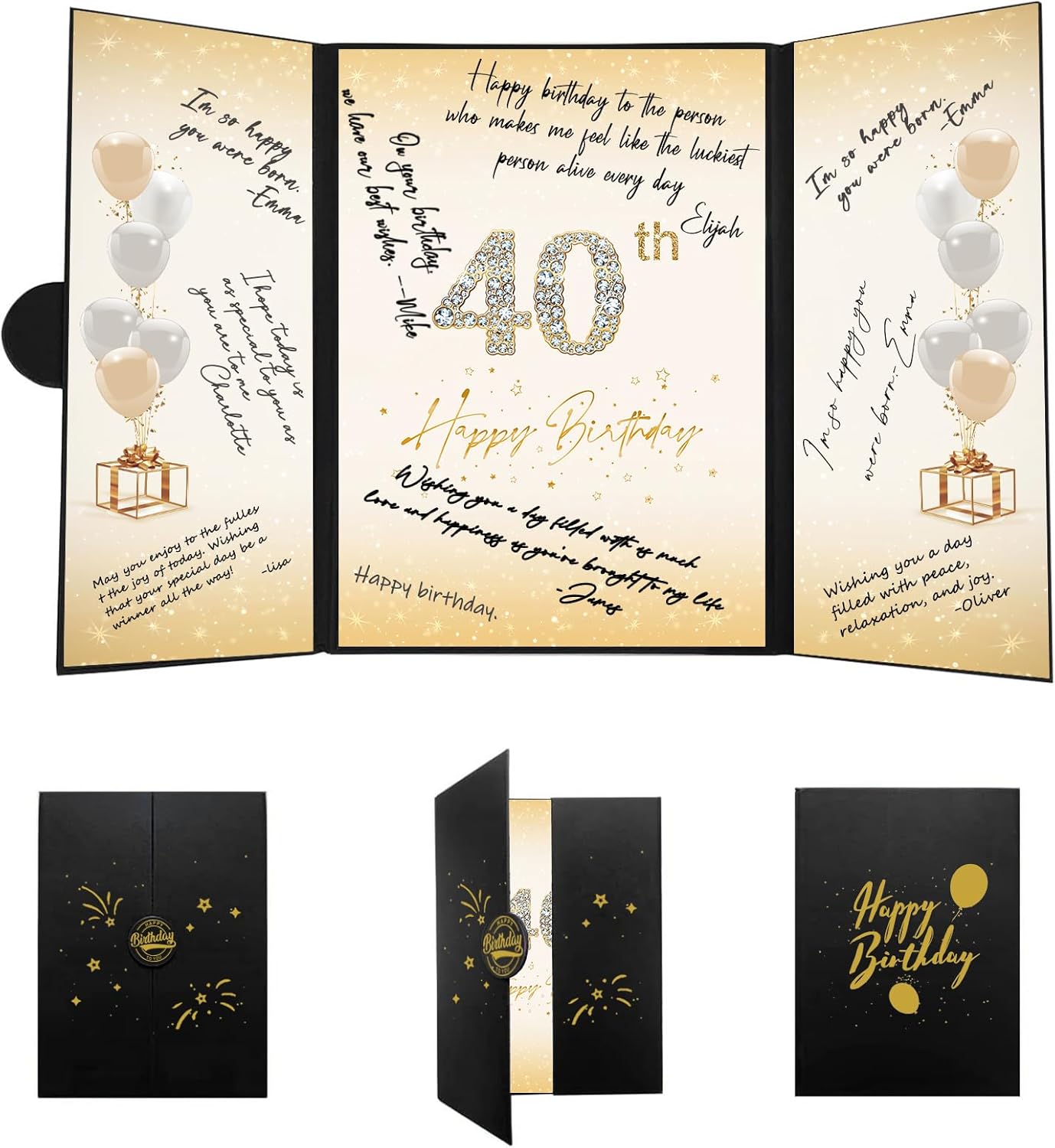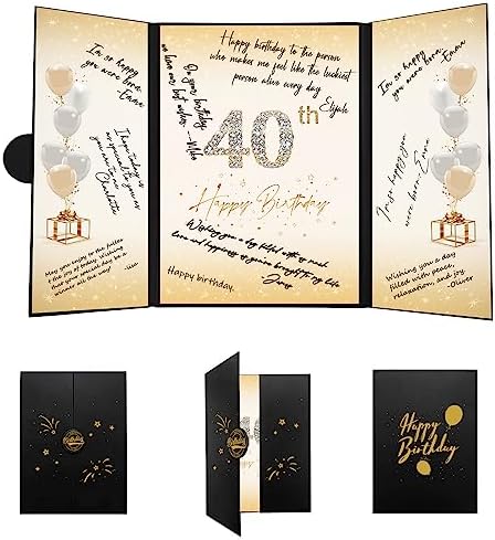 • 【Exquisite Design】- The black and gold certificate has a gilded badge on the cover, and the inside of the signature certificate is divided into three parts, the middle page is printed with the message '40th Happy Birthday'. This 40th birthday signature board can be opened directly and stand on the table. Tips: No pen.